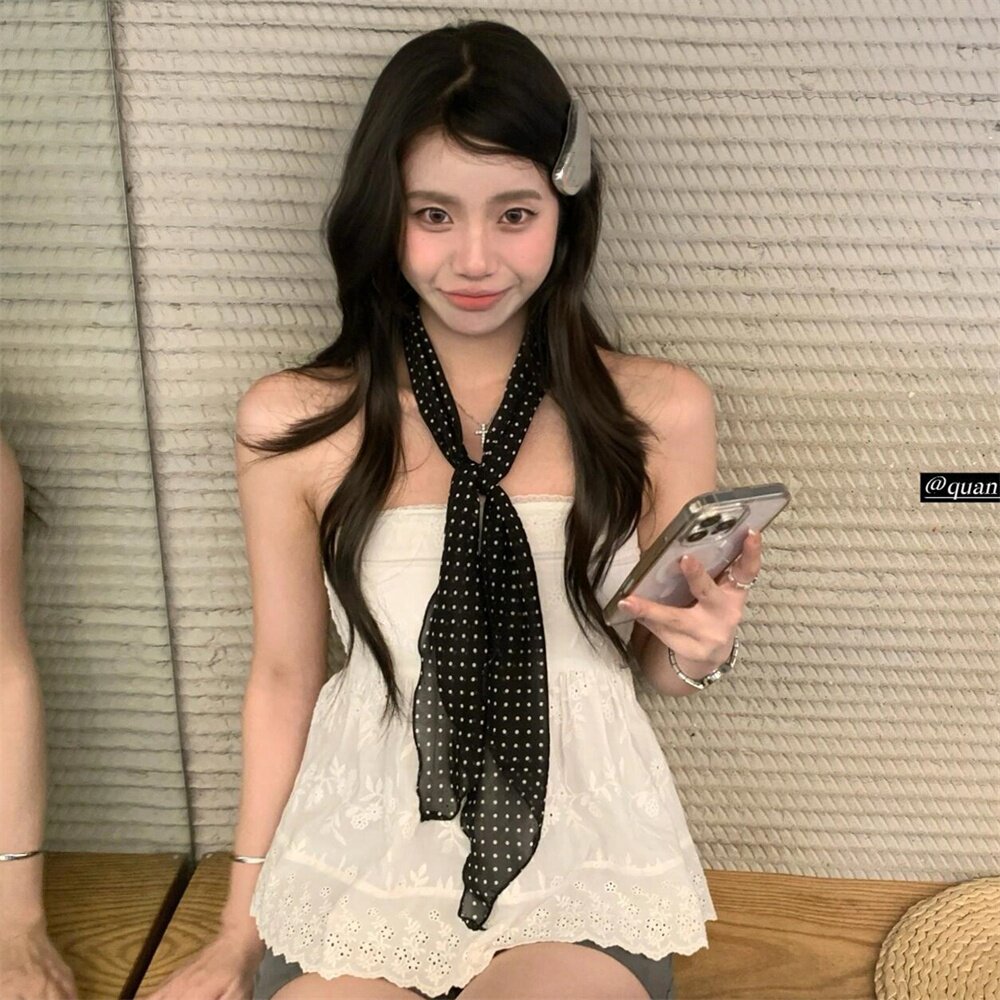zoozmini复古气质黑白波点丝巾氛围感装饰领巾小众轻奢风围巾围脖