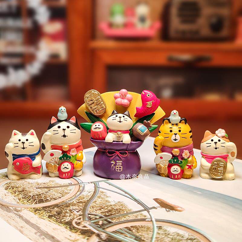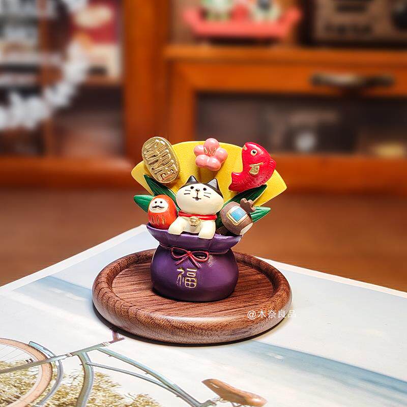 新年招福开 运紫色福袋招财猫可爱治愈系桌面装饰摆饰小礼物送家