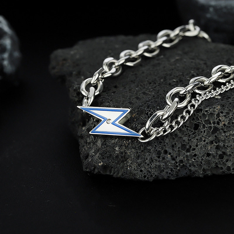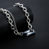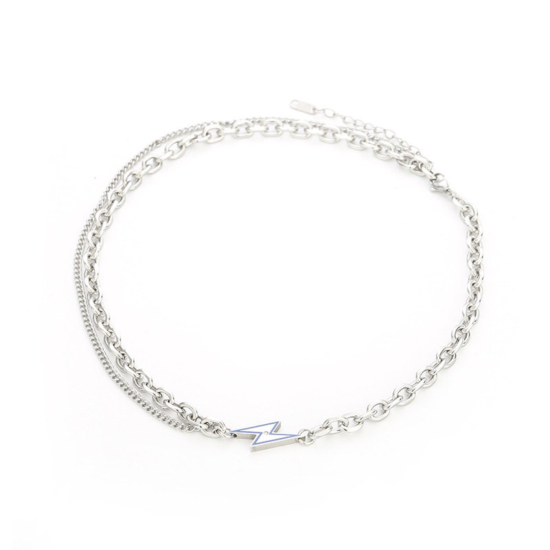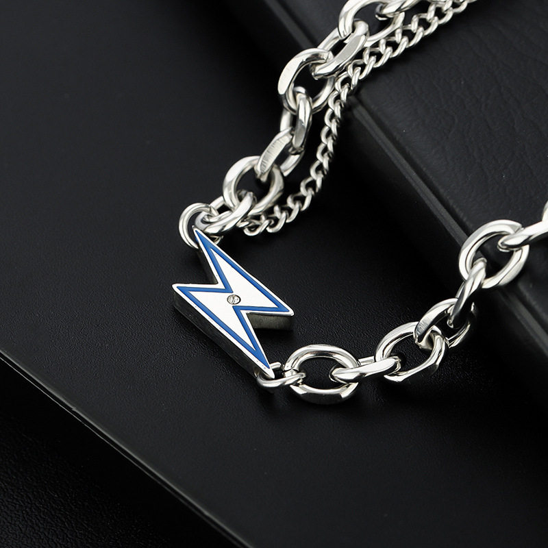 蓝色闪电项链男钛钢不掉色简约百搭古巴链女潮配饰小众高级感饰品