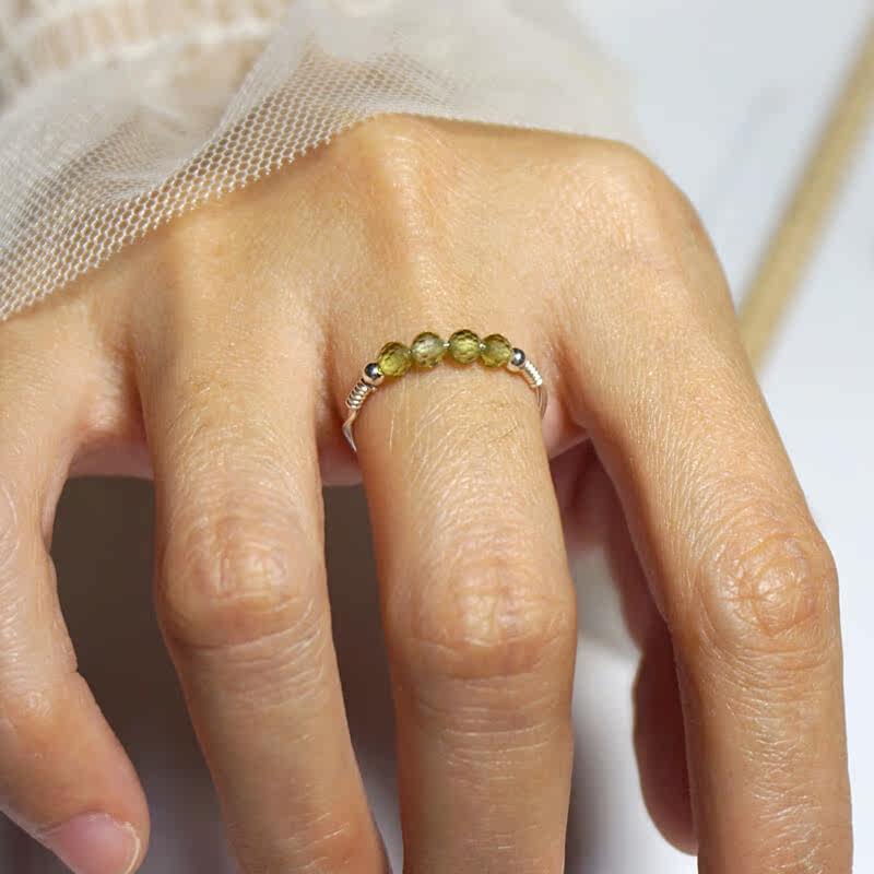【招财增运】原创手工999足银戒指女绿橄榄石胖手大号小指尾戒
