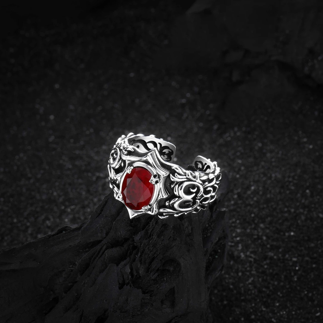 【两件包邮】复古精致花纹戒指女重工个性设计嘻哈开口指环宽边创