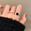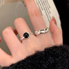 饰尚e族黑色锆石波浪戒指女小众设计几何不规则开口戒子食指指环