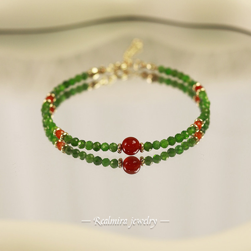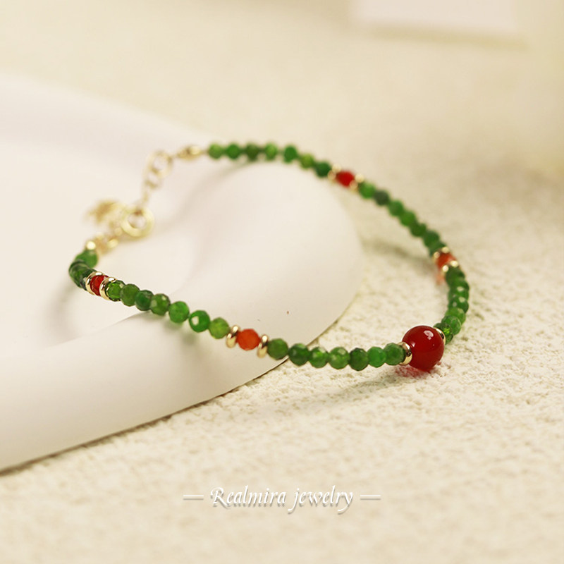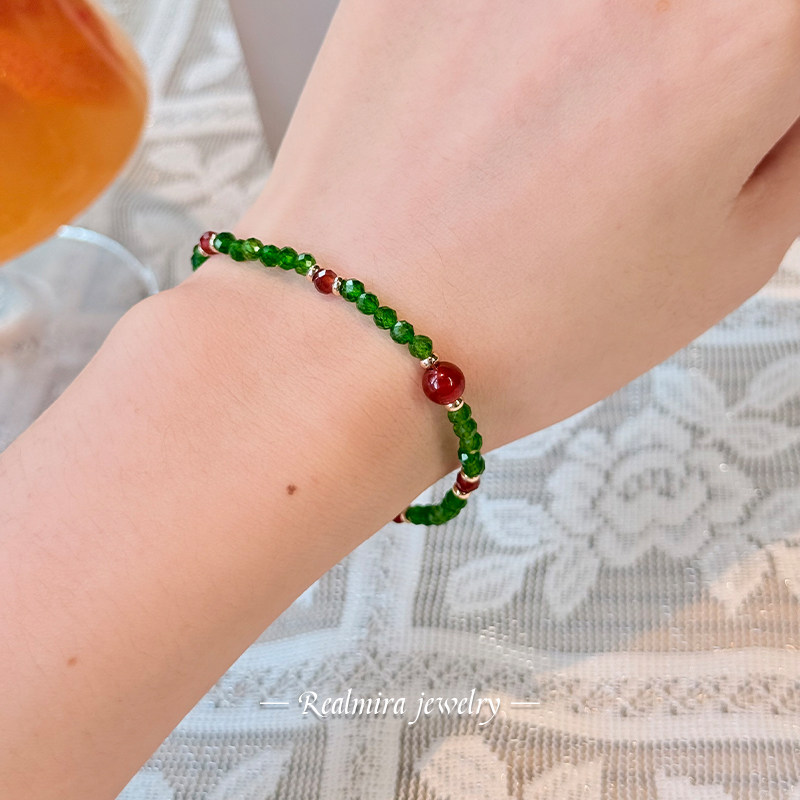 JINYU 精致绿色透辉石红玛瑙手链女款高级感国风小众新中式手串