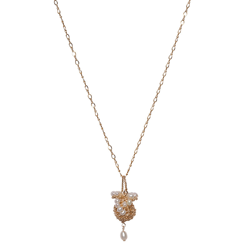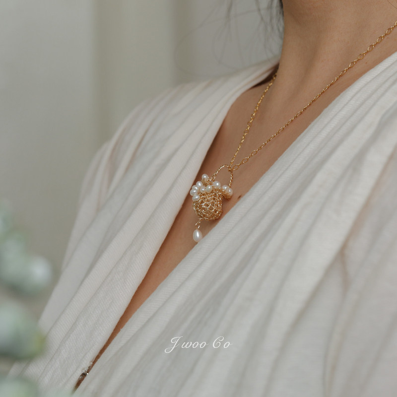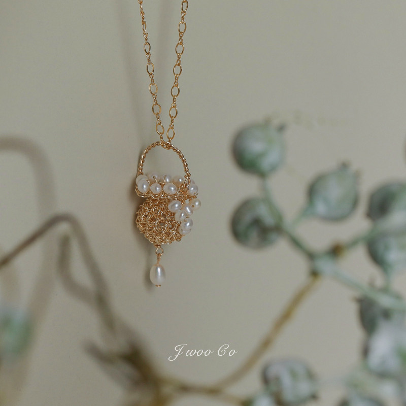 JWOO/花间 手创小众重磅手工原创14K注金丝精细编织精致花篮项链