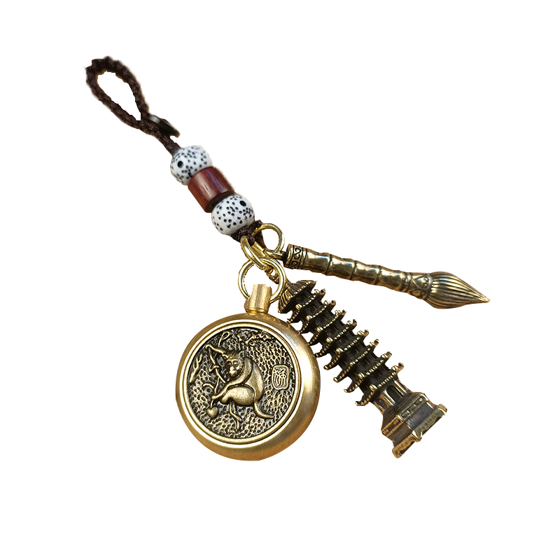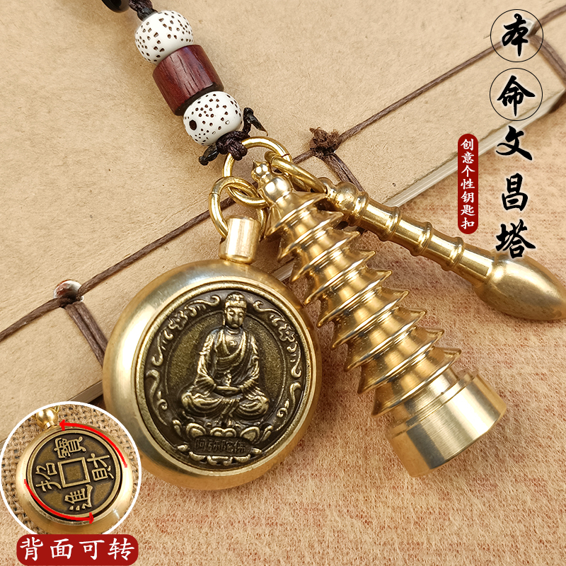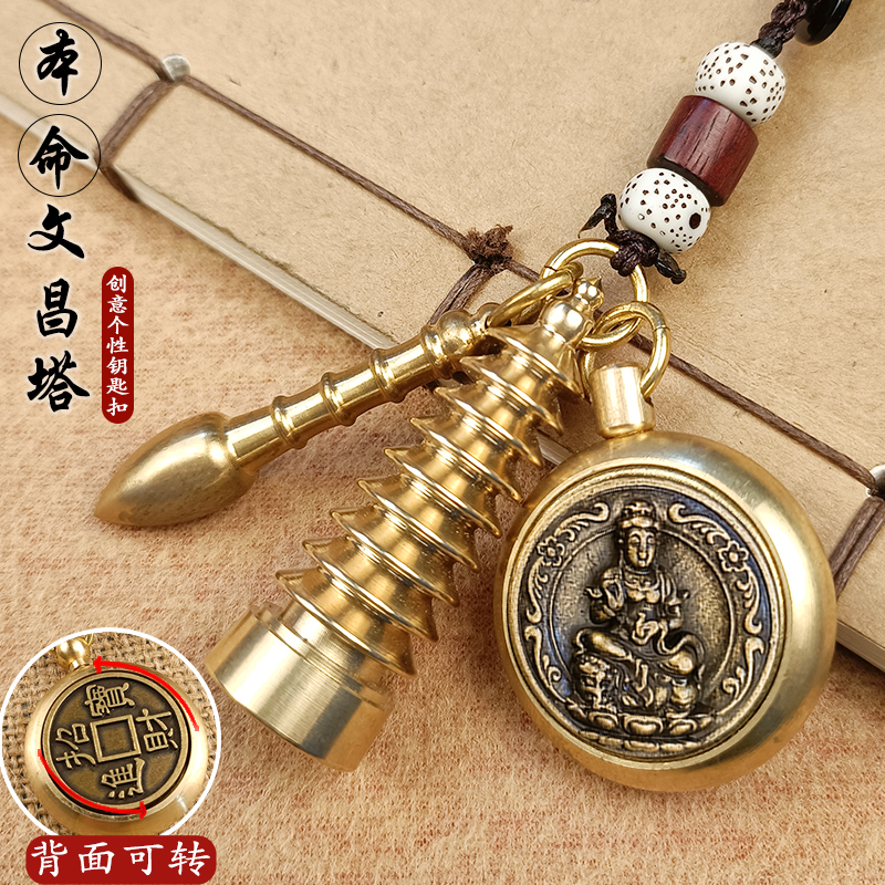 纯黄铜文昌塔笔转钱本命守护生肖汽车钥匙扣创意挂件男女挂饰个性