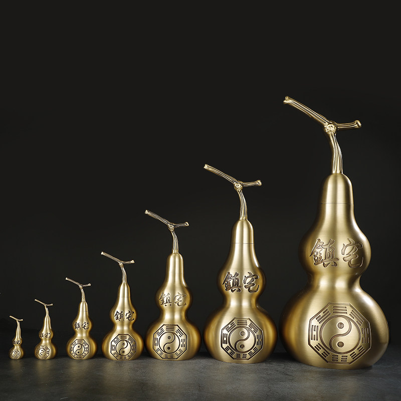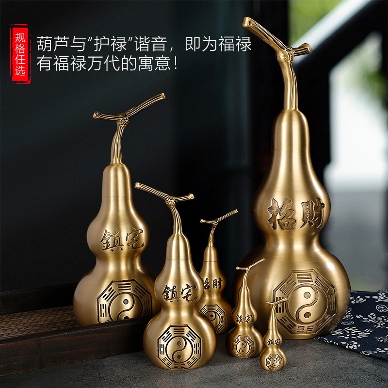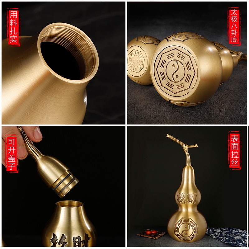 黄铜葫芦摆件招财镇宅家居客厅玄关豪宅摆件大号工艺品开口复古