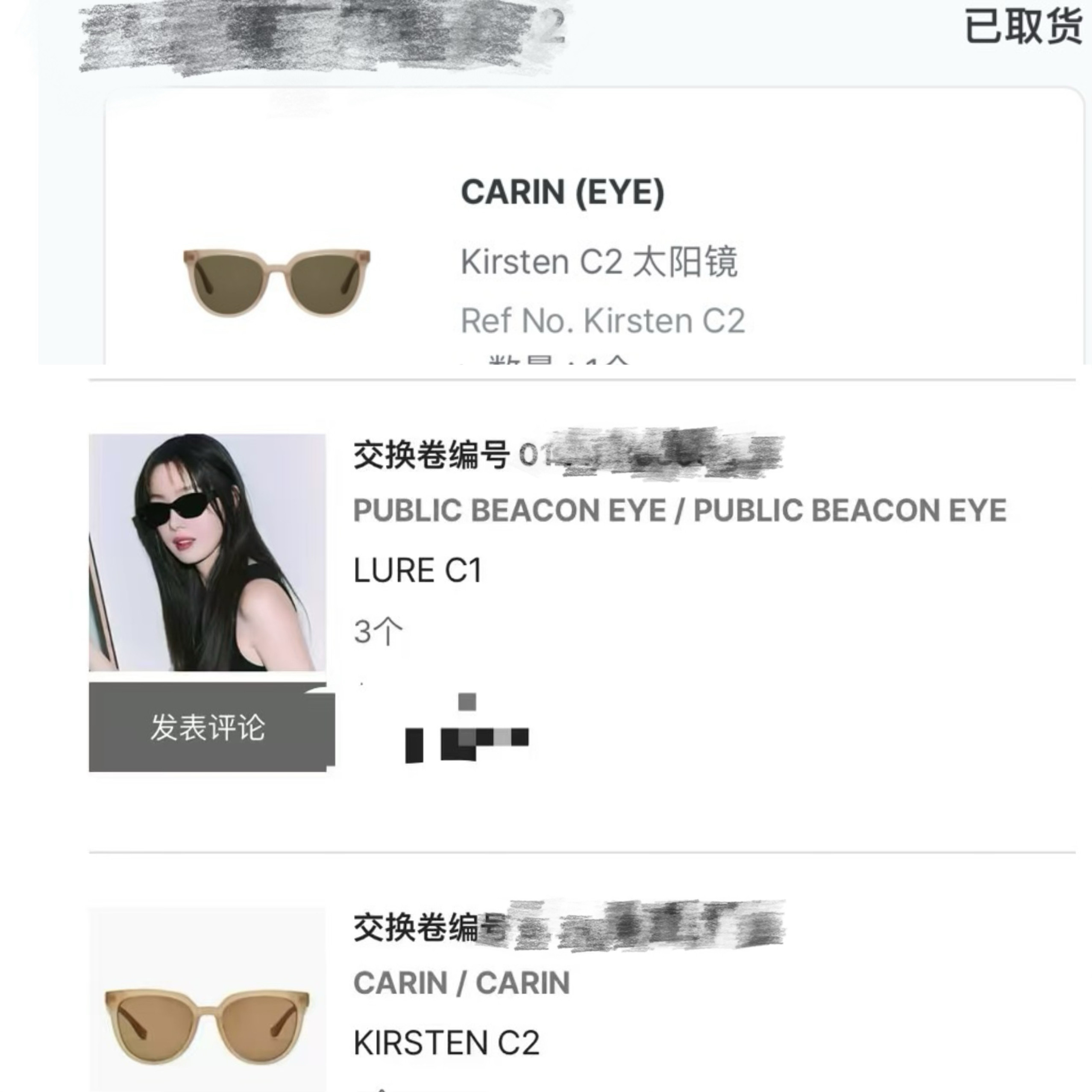 CARIN刘亦菲秀智同款KIRSTEN系列太阳镜墨镜韩国人肉背回不退不换