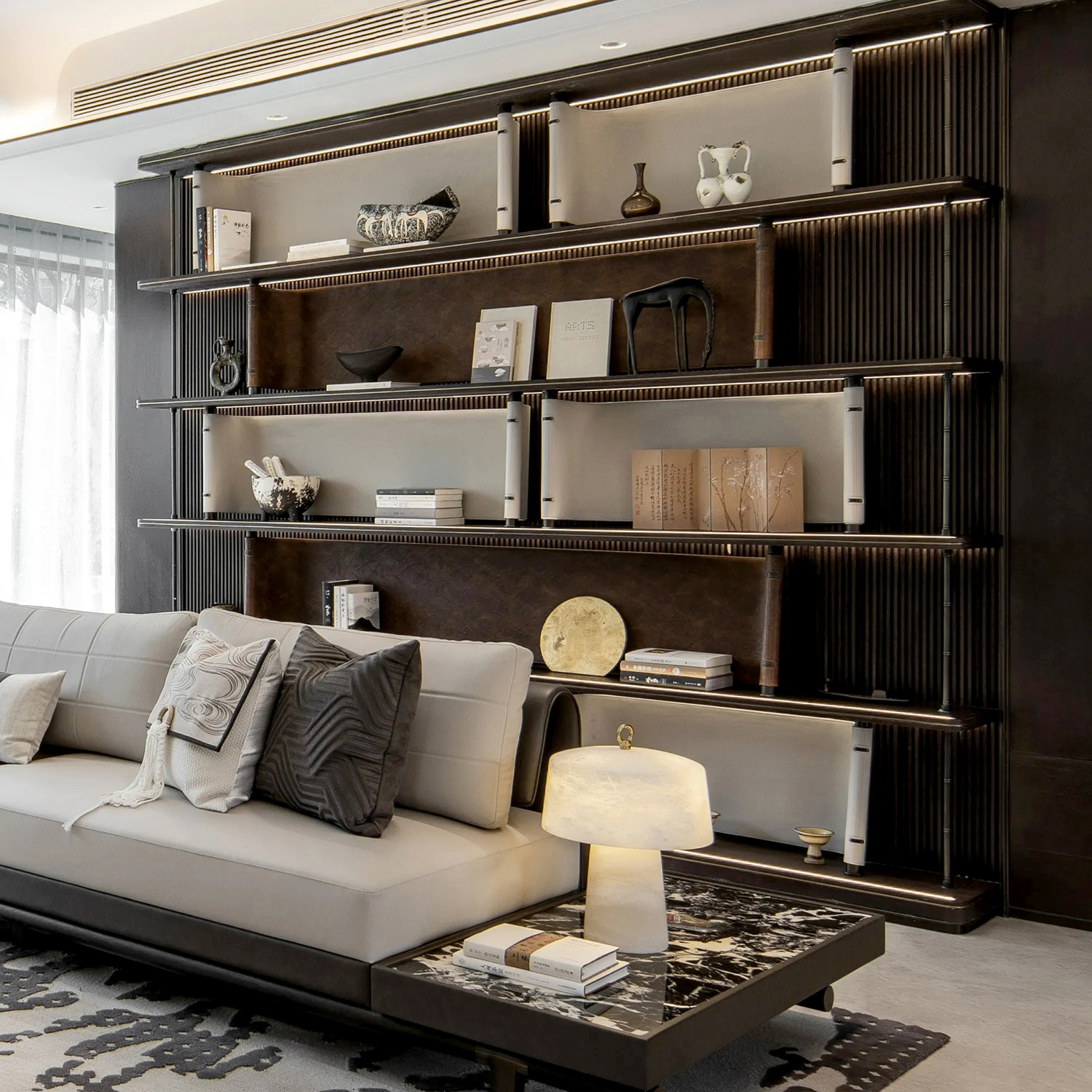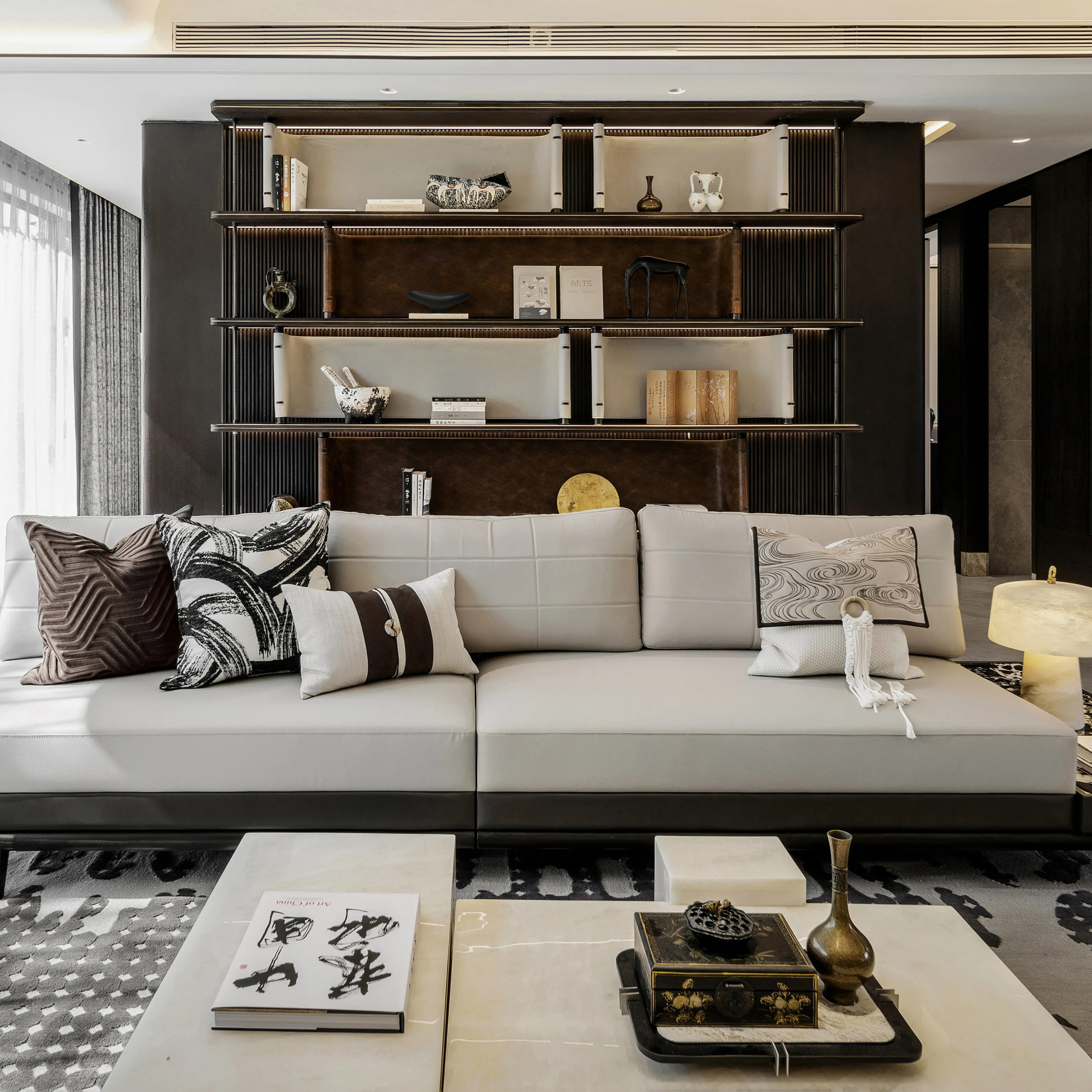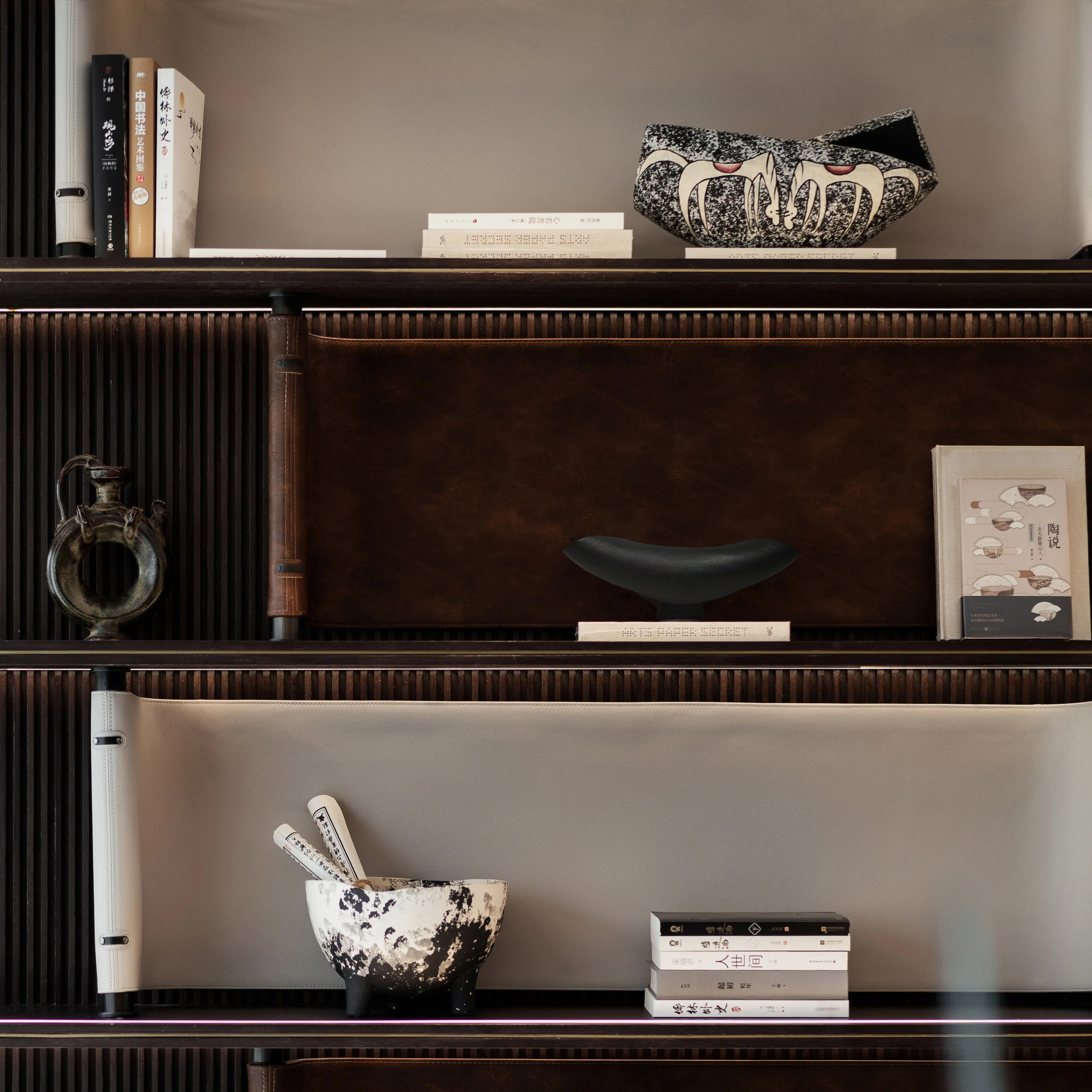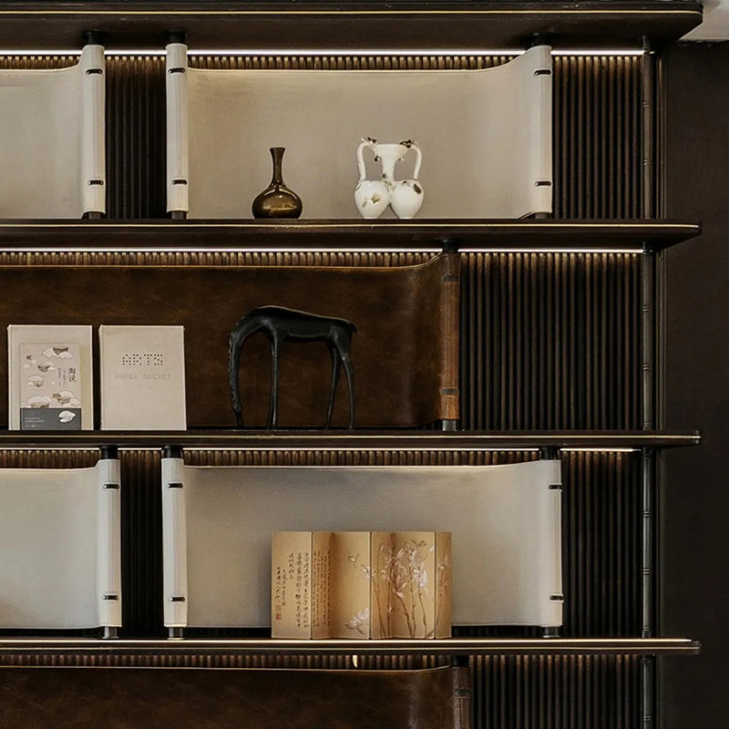 新中式中古风客厅书架软装摆件设计师搭配组合直播背景花瓶小摆件