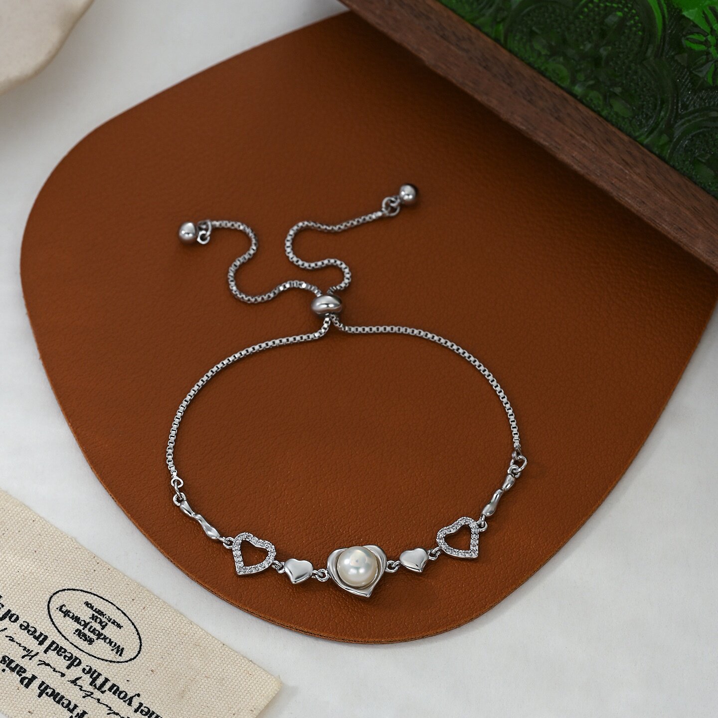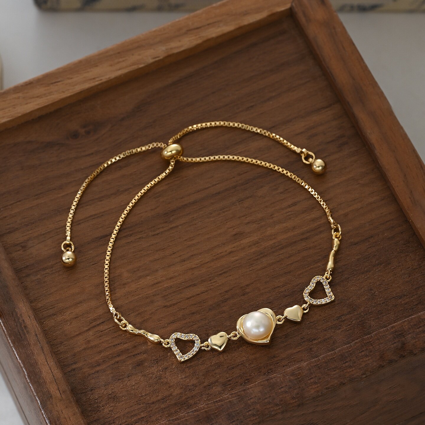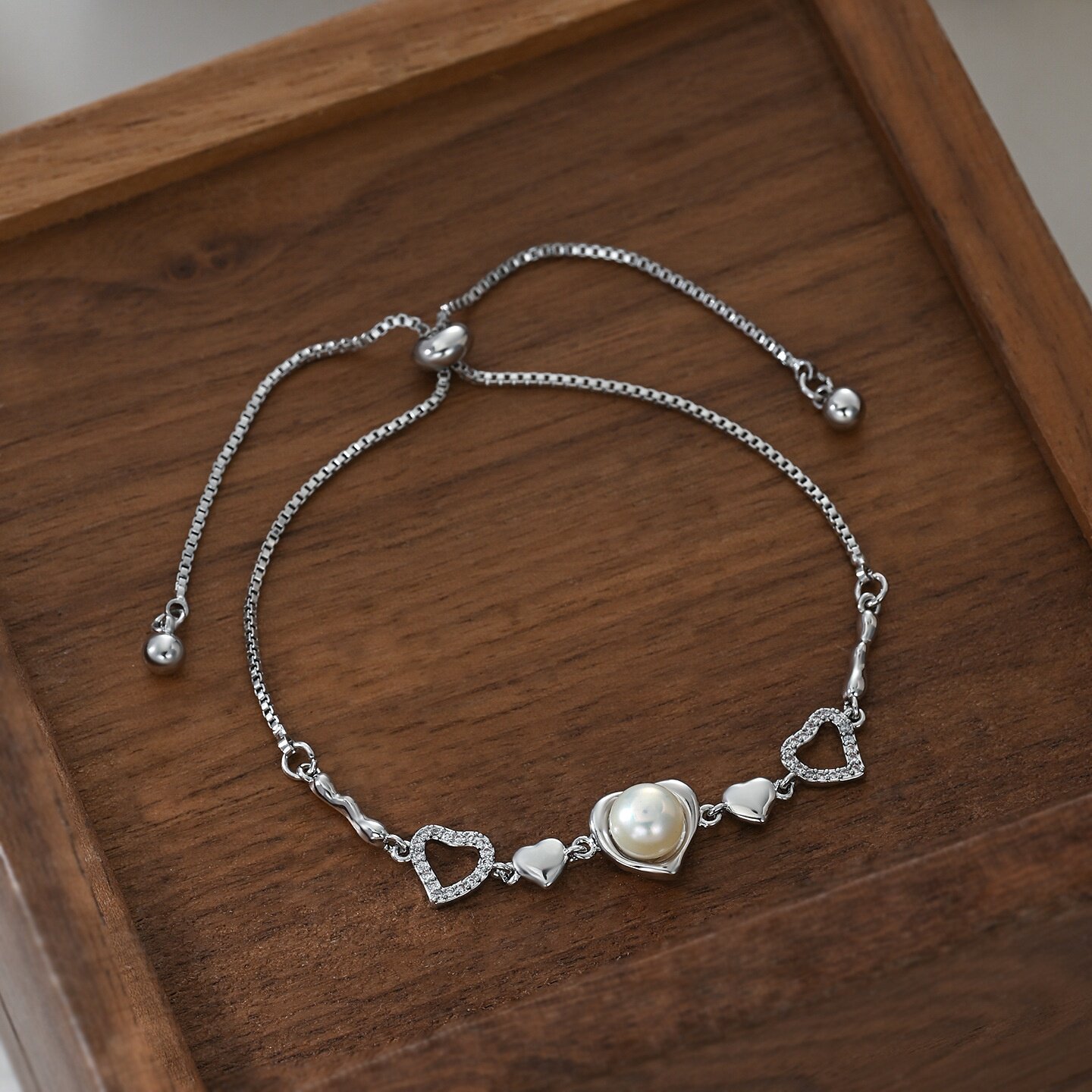 2026秋冬新款复古法式珍珠手链女感爱心可调节抽拉手饰品简约手环