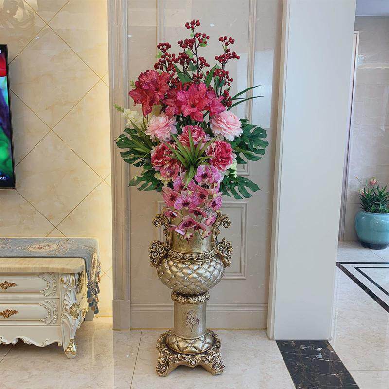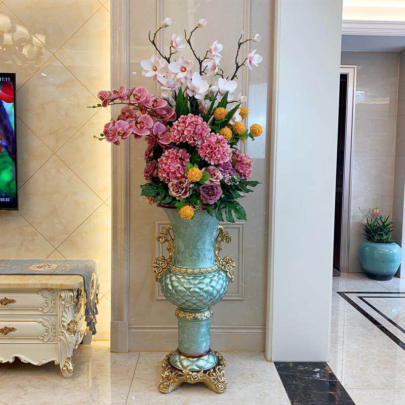 落地大花瓶欧式家居别墅玄关客厅摆件插花大号装饰树脂蓝色花瓶