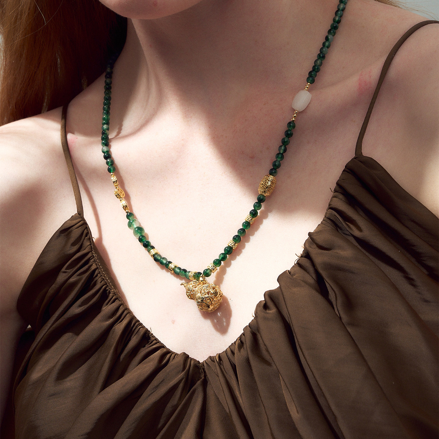 DINN DINN DESIGN新年限定系列绿色水草晶串珠项链原创设计锁骨链