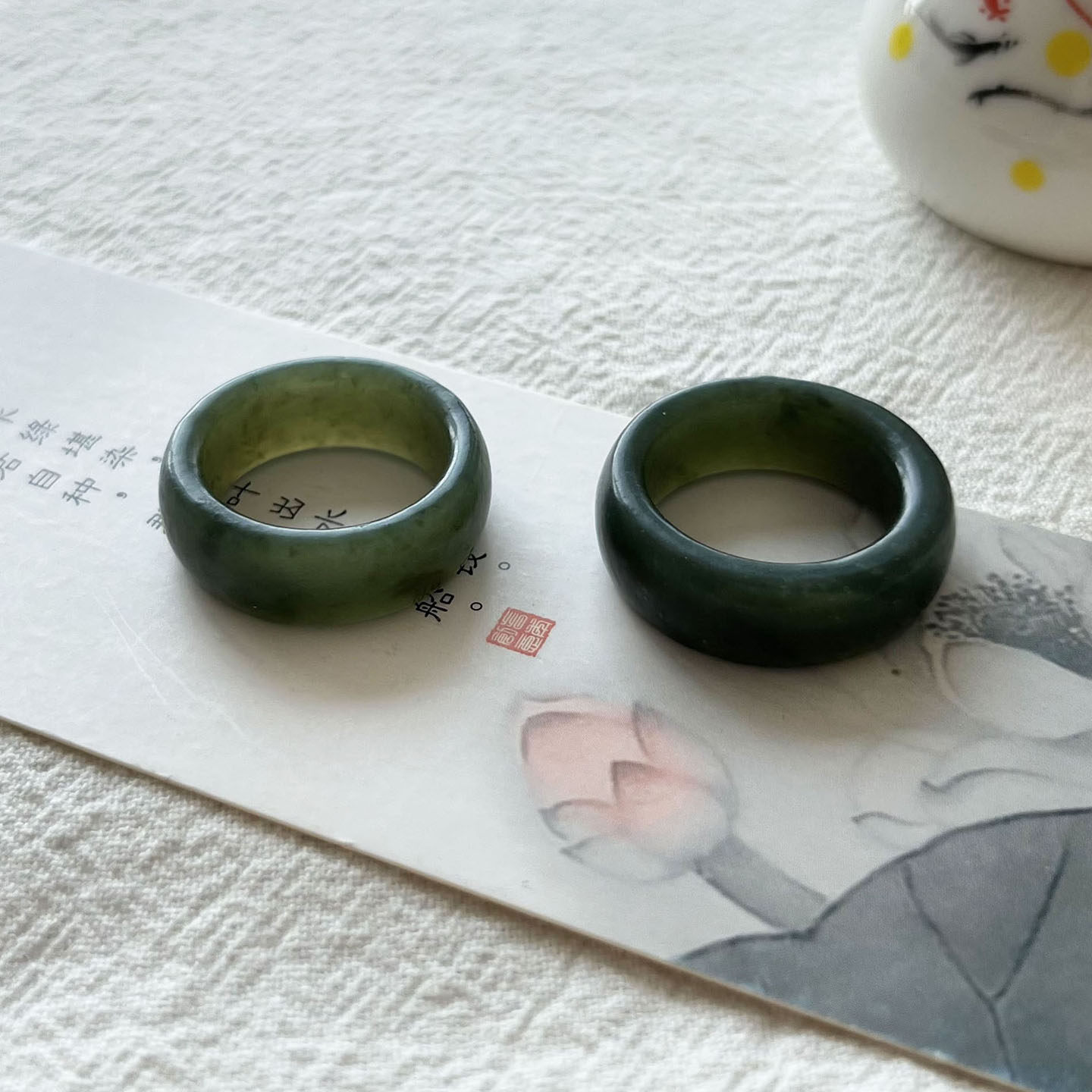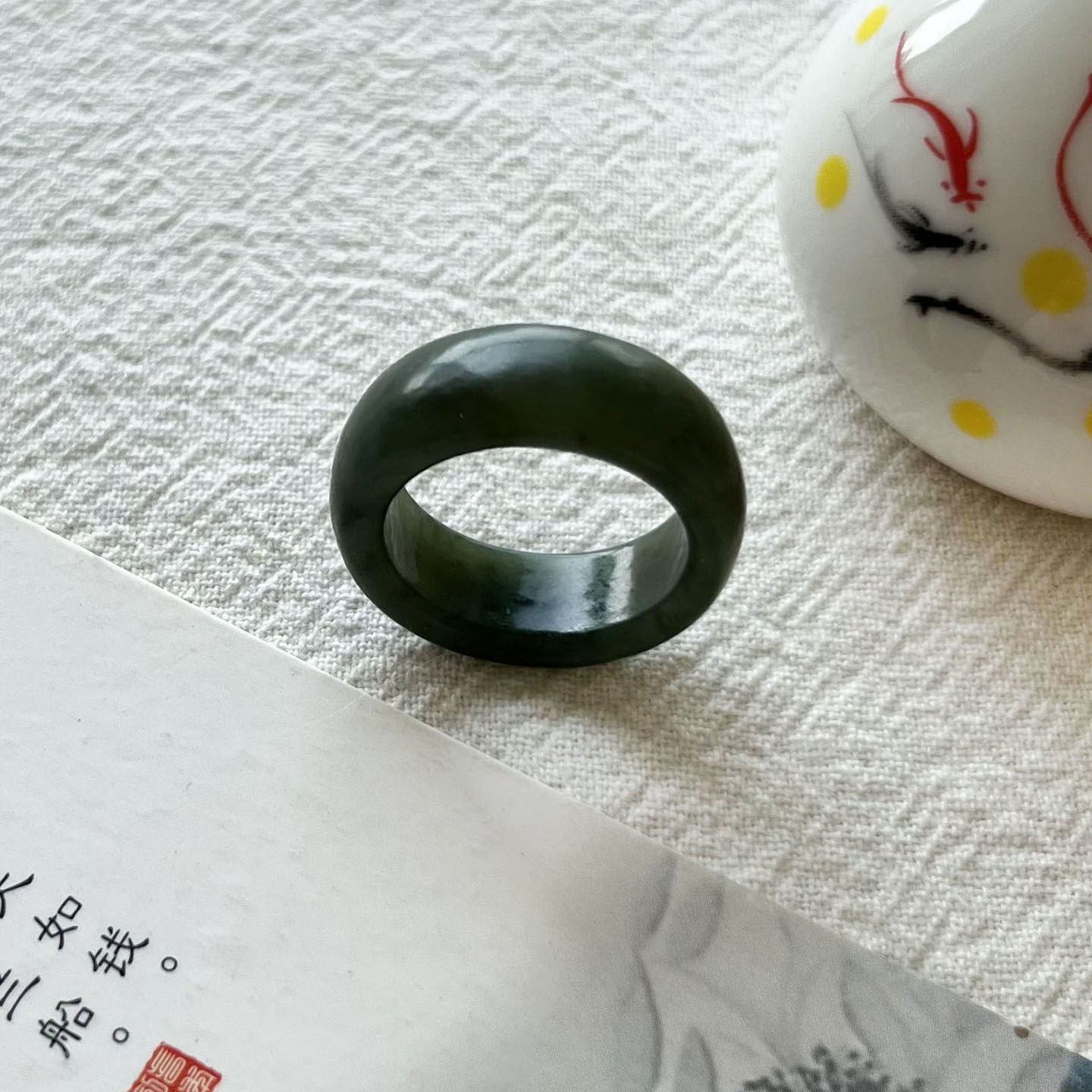 天然和田玉青玉男士戒指 青绿色新疆黑青玉复古小众男款玉石指环
