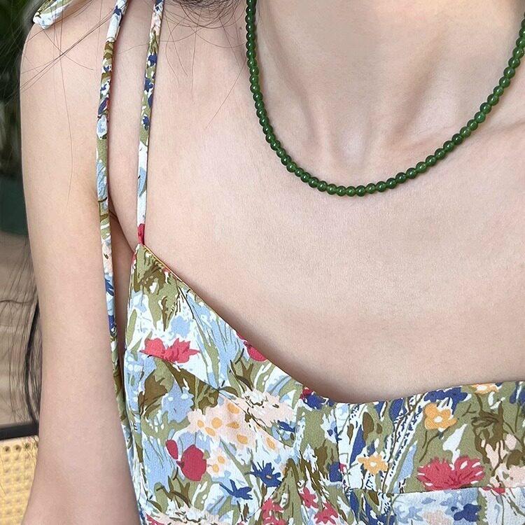Vögel「春醒」绿色玉髓串珠项链显白碧玉色复古新中式项链锁骨链