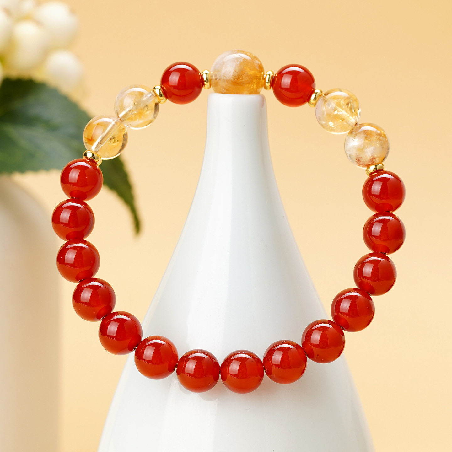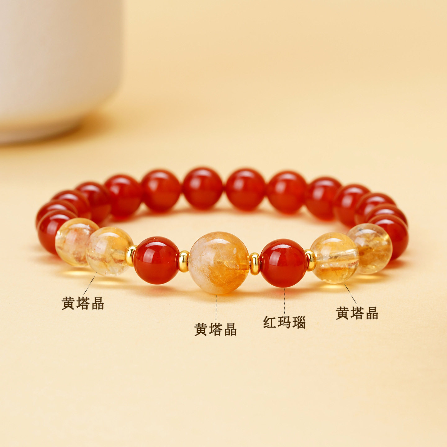 批发天然水晶红玛瑙黄塔晶手链双圈原创红色本命年女士款发彩手串
