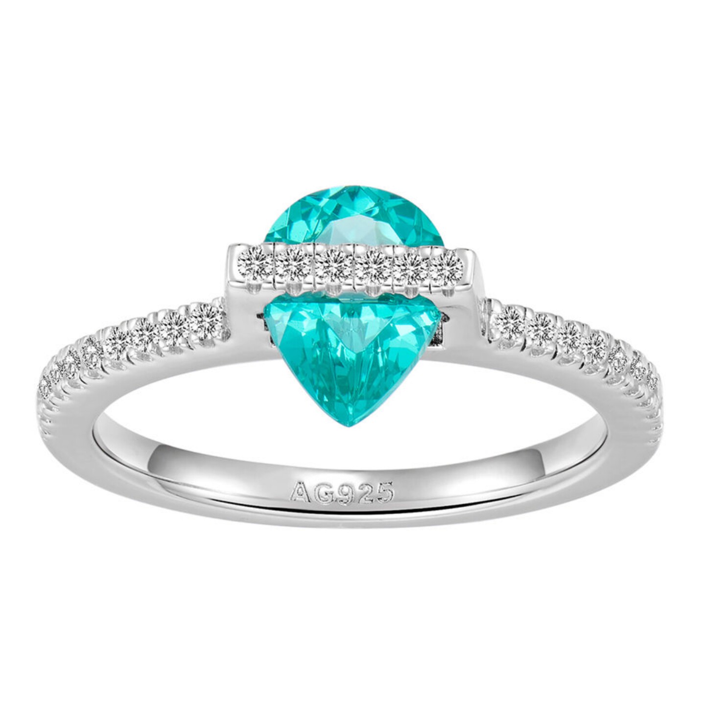 蓝色小水滴1.25克拉环绕水滴帕拉伊巴色单钻戒指女925银精致气质