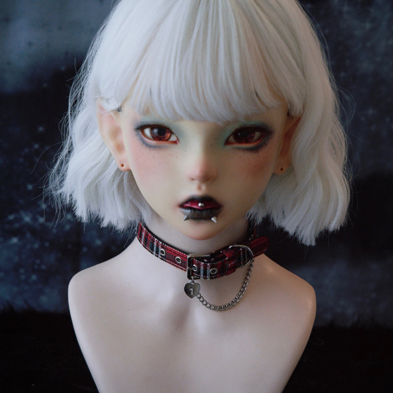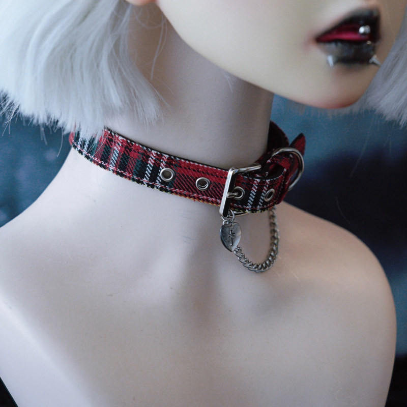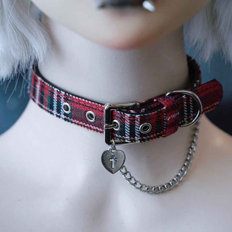怪糖饰物集原创手工爱心十字红绿格纹颈链choker暗黑亚文化红色