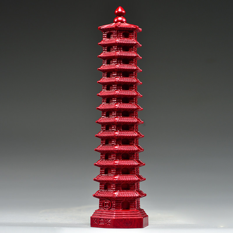 红色木雕十三层文昌塔摆件实木13层文昌塔客厅玄关书房装饰工艺品