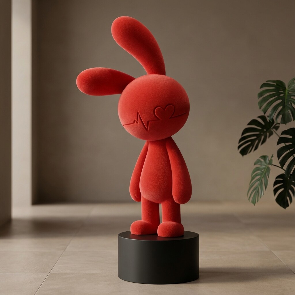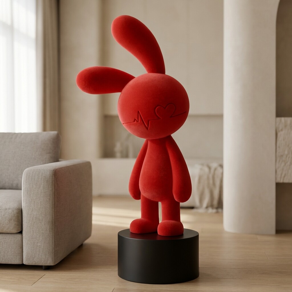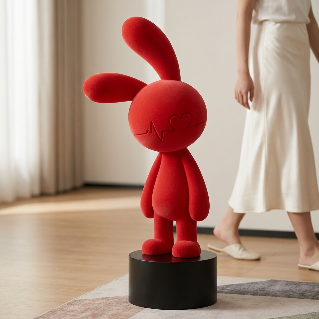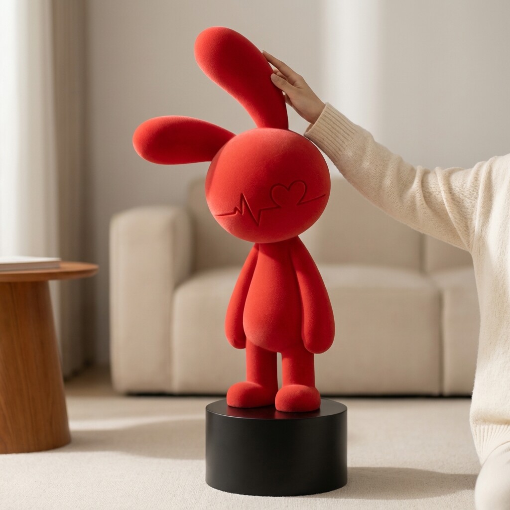 意式极简红色兔子摆件客厅电视柜酒柜小众高级感装饰工艺品