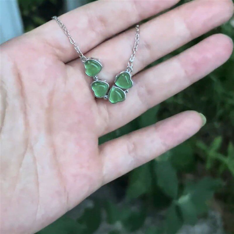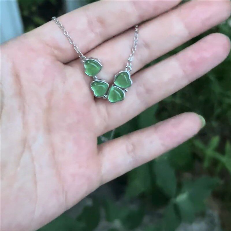 韩系简约绿色四叶草吊坠项链森系小清新配饰高级感轻奢小众锁骨链