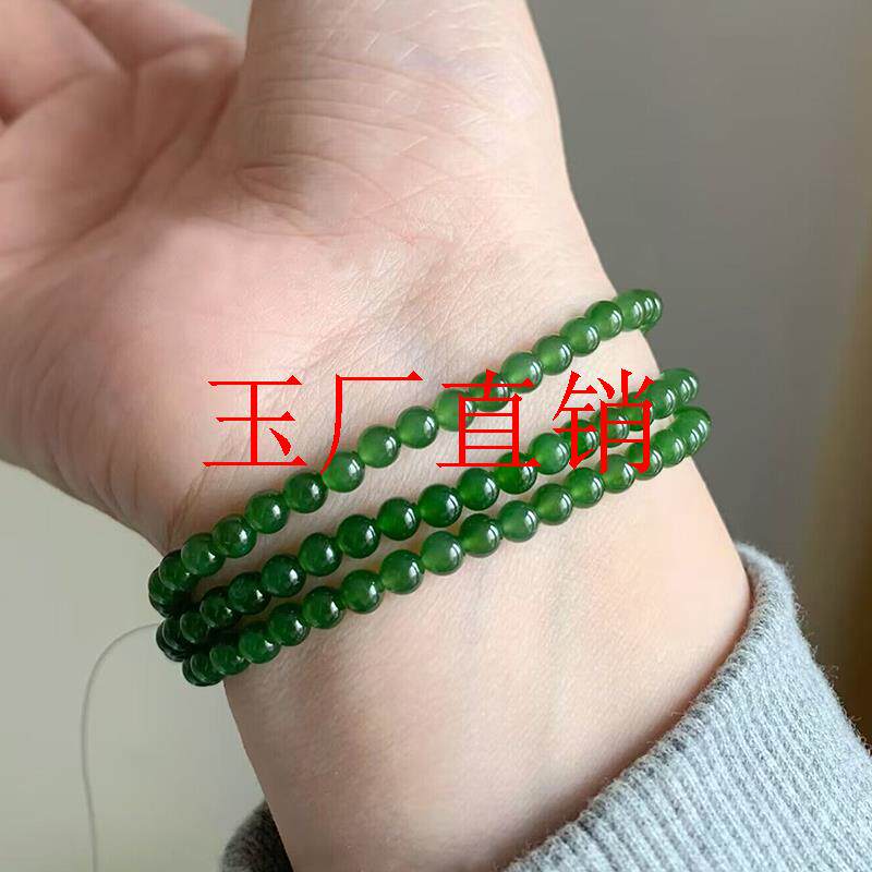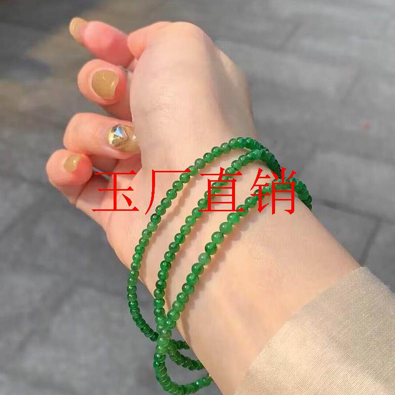 俄罗斯老料碧玉小米珠链正阳绿果绿色多圈玉手串菠菜绿和田玉女款