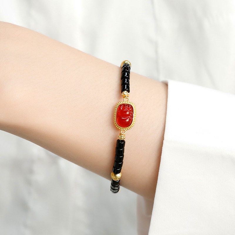 人造和田玉招财玉貔貅黑色手链时尚潮流风聚财小吞金兽饰品