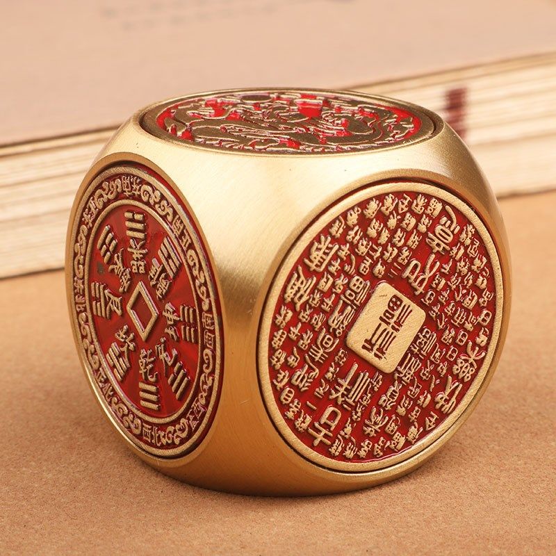 红色黄铜五帝钱纯铜朱砂红六面转钱魔方男手把件桌面摆件指尖陀螺