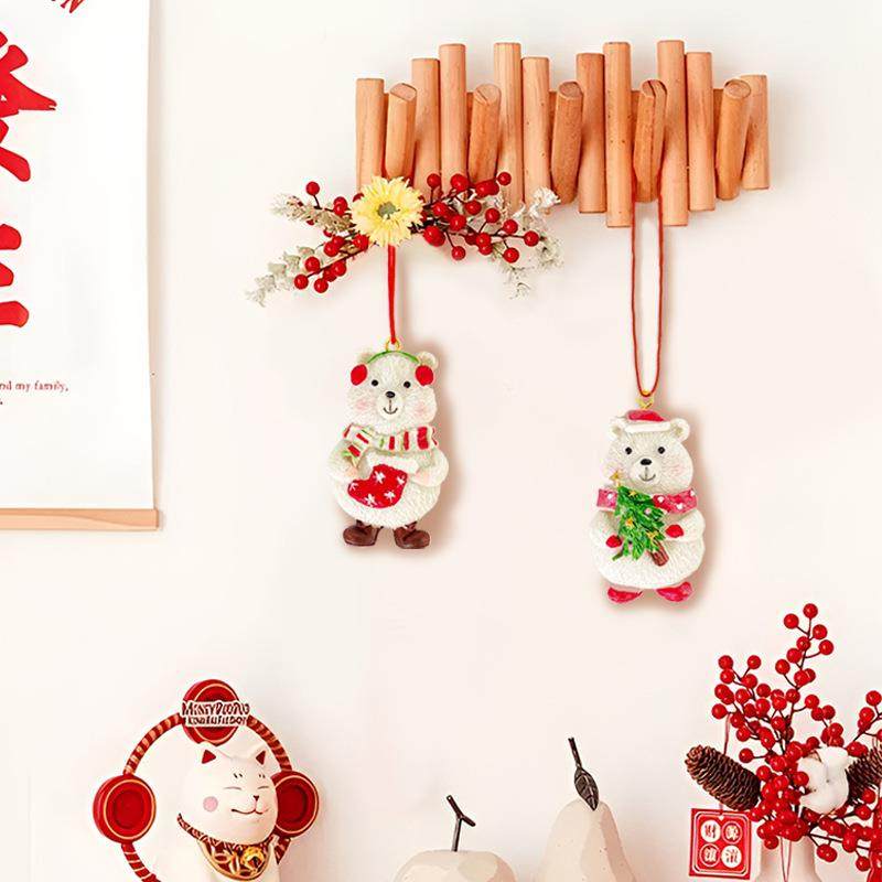 跨境可代发圣诞挂件小礼品欧美风小熊墙壁挂饰树脂工艺家居装饰品