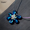 花漾银饰品蓝色水晶花朵项链项圈唯美吊坠锁骨链女颈链毛衣链配饰