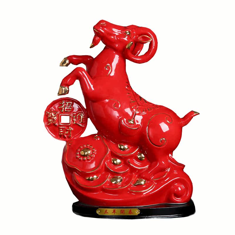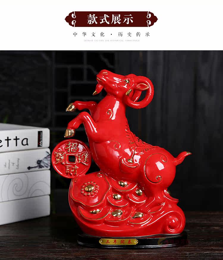 十二生肖羊摆件红色羊吉祥物三羊开泰招财风水居家办公会所工艺品