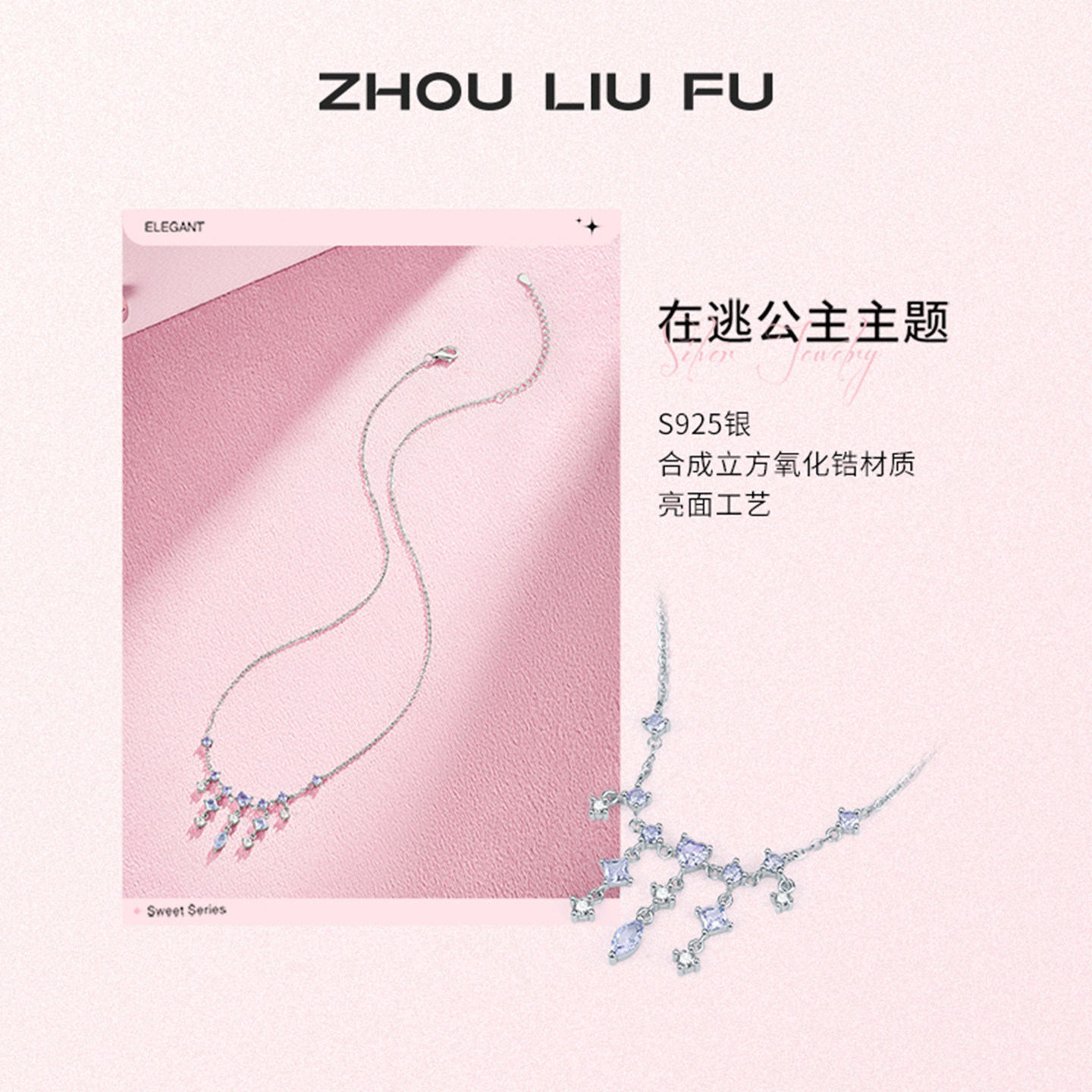 周六福项链女S925银链坠高级感轻奢小众送女友圣诞礼物