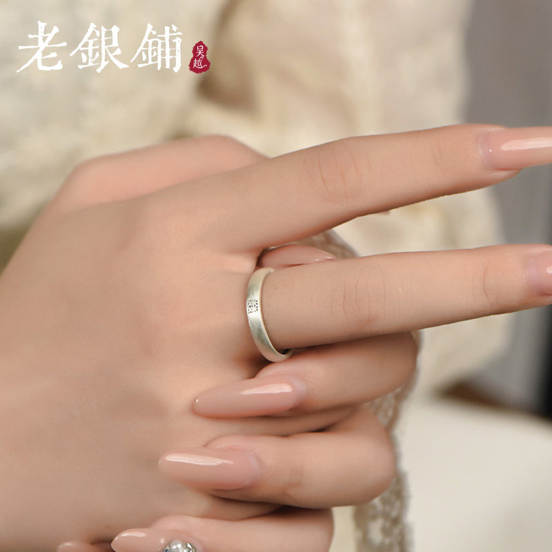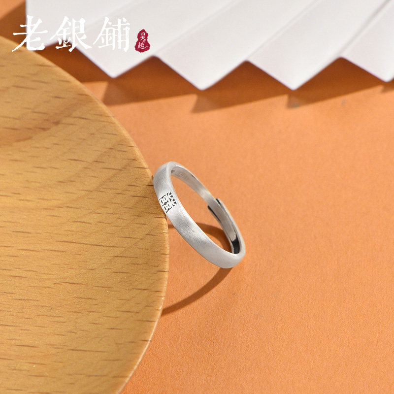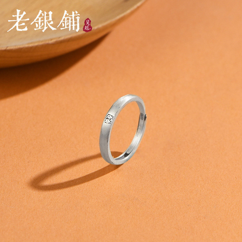 吴越老银铺足银999囍字对戒复古国潮民族风礼物情侣戒开口可调节