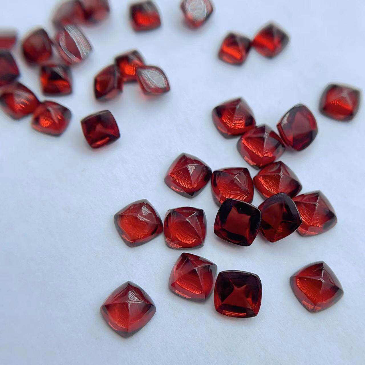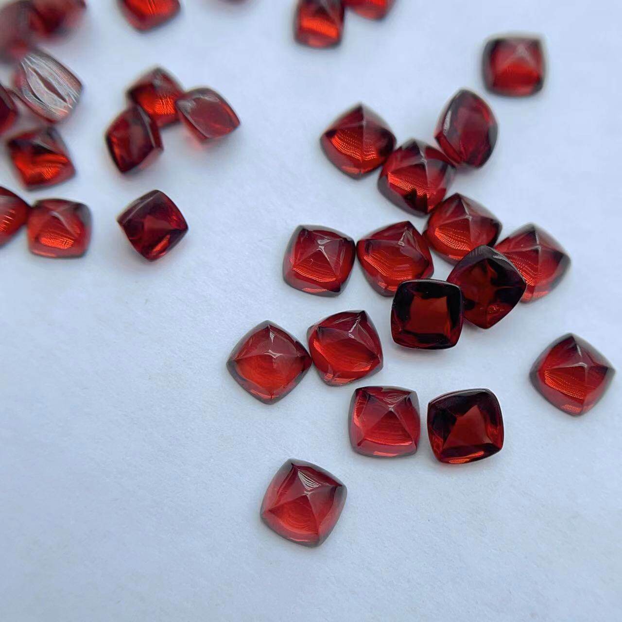 天然红色糖塔石榴石裸石方形5*5/6*6mm方糖戒面吊坠戒指耳钉宝石