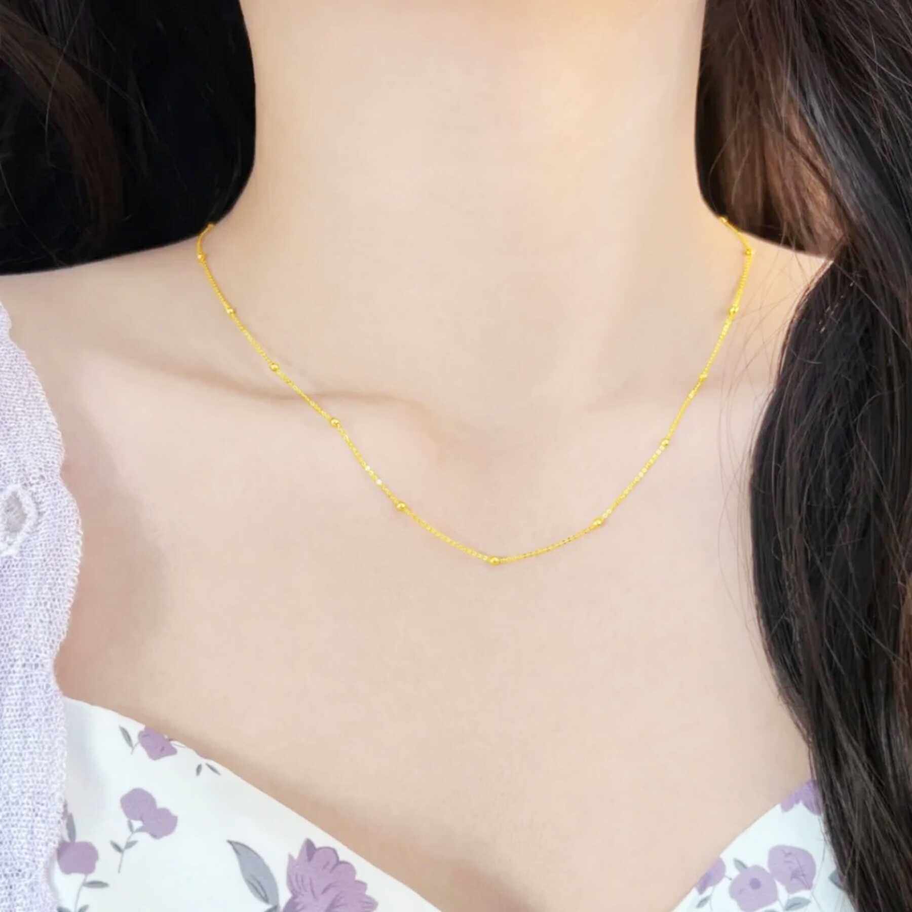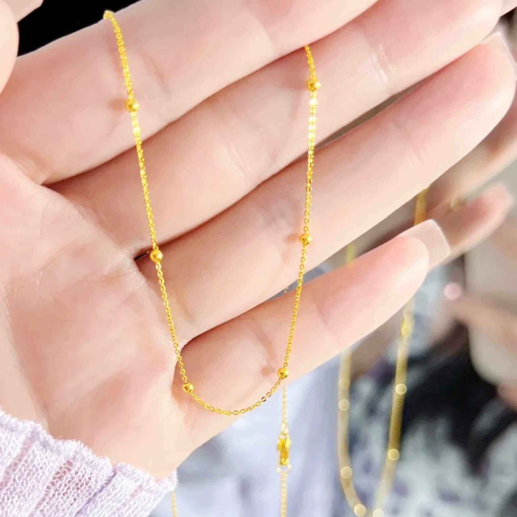 小金珠素链蛇骨链女久不掉色18K黄金色项链金链子锁骨链首饰颈链