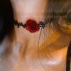 黑色蕾丝系带长款choker锁骨颈链酒红色编织玫瑰花朵脖子项圈绑绳