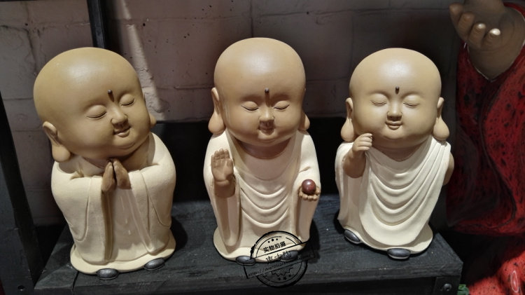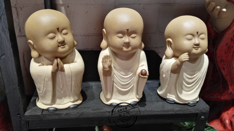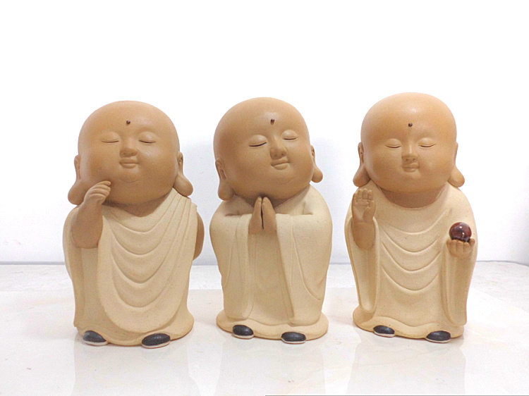 陶瓷工艺品三和尚小佛像摆件 石湾公仔 家居饰品电视酒柜摆设礼物