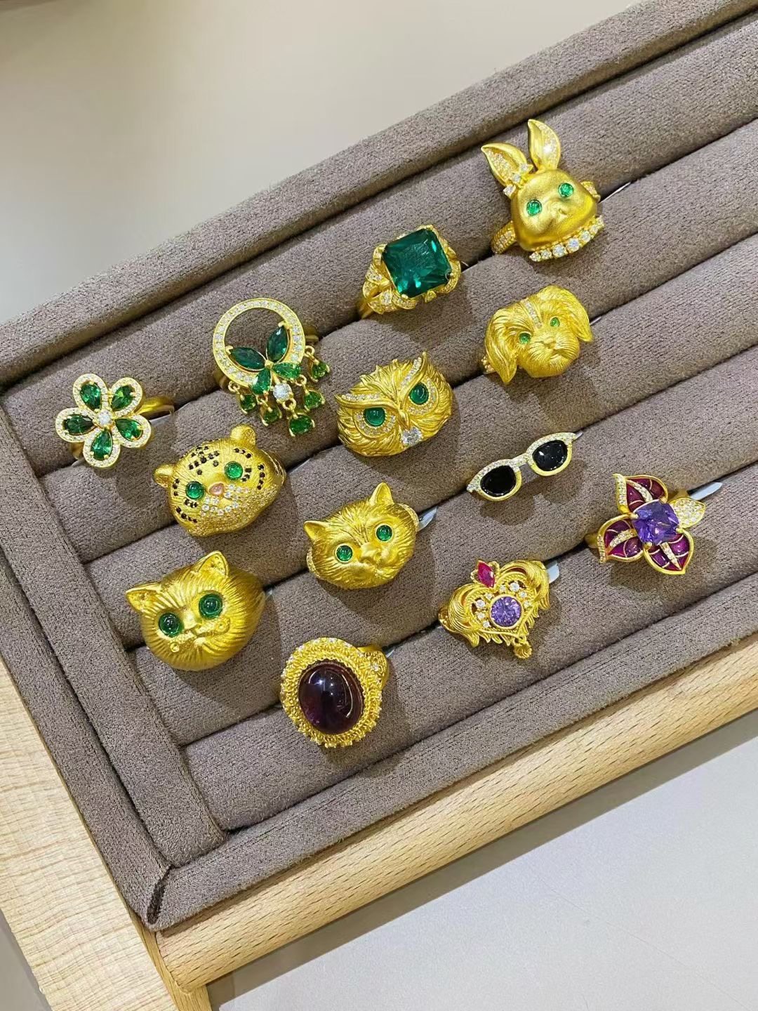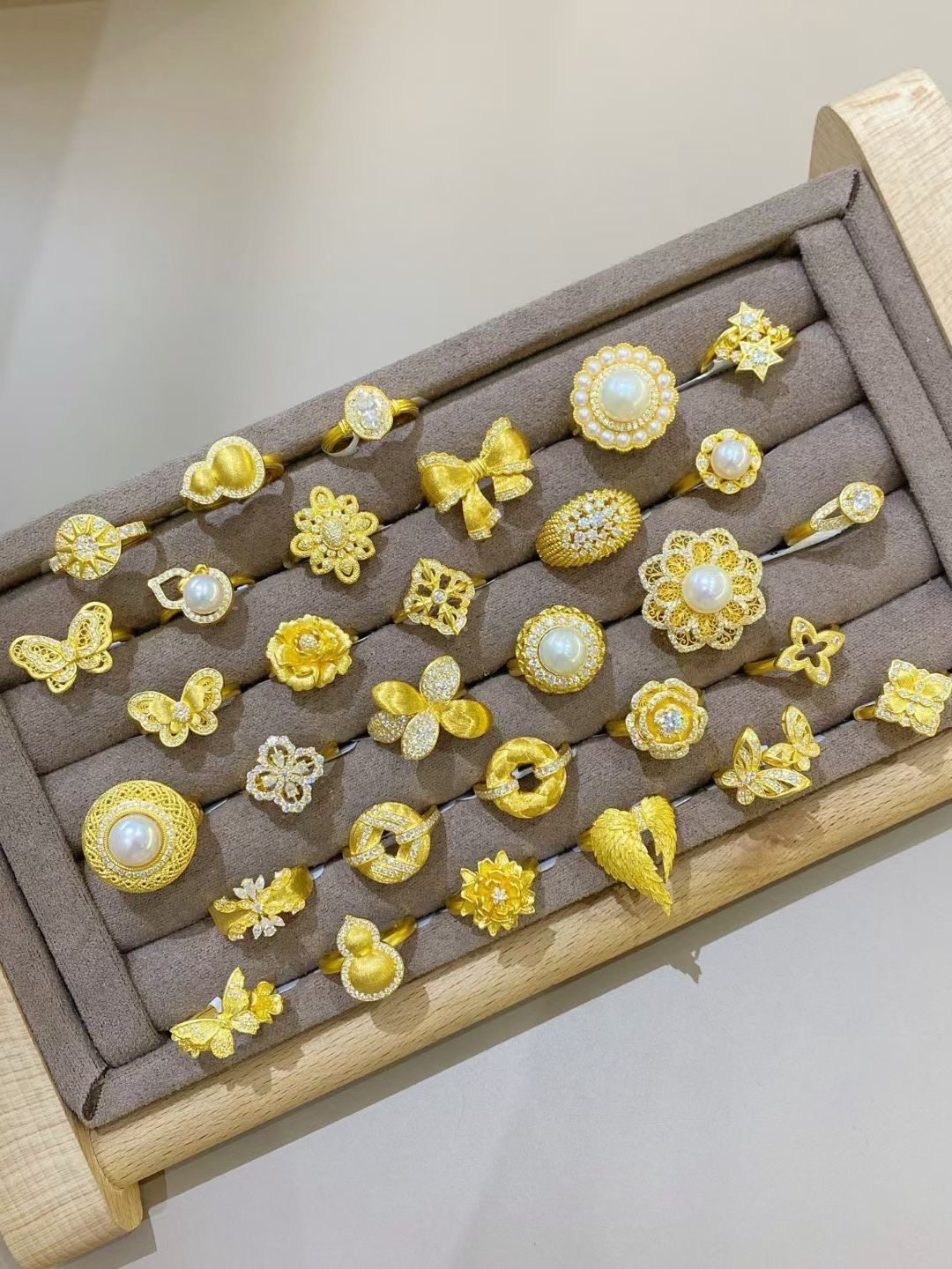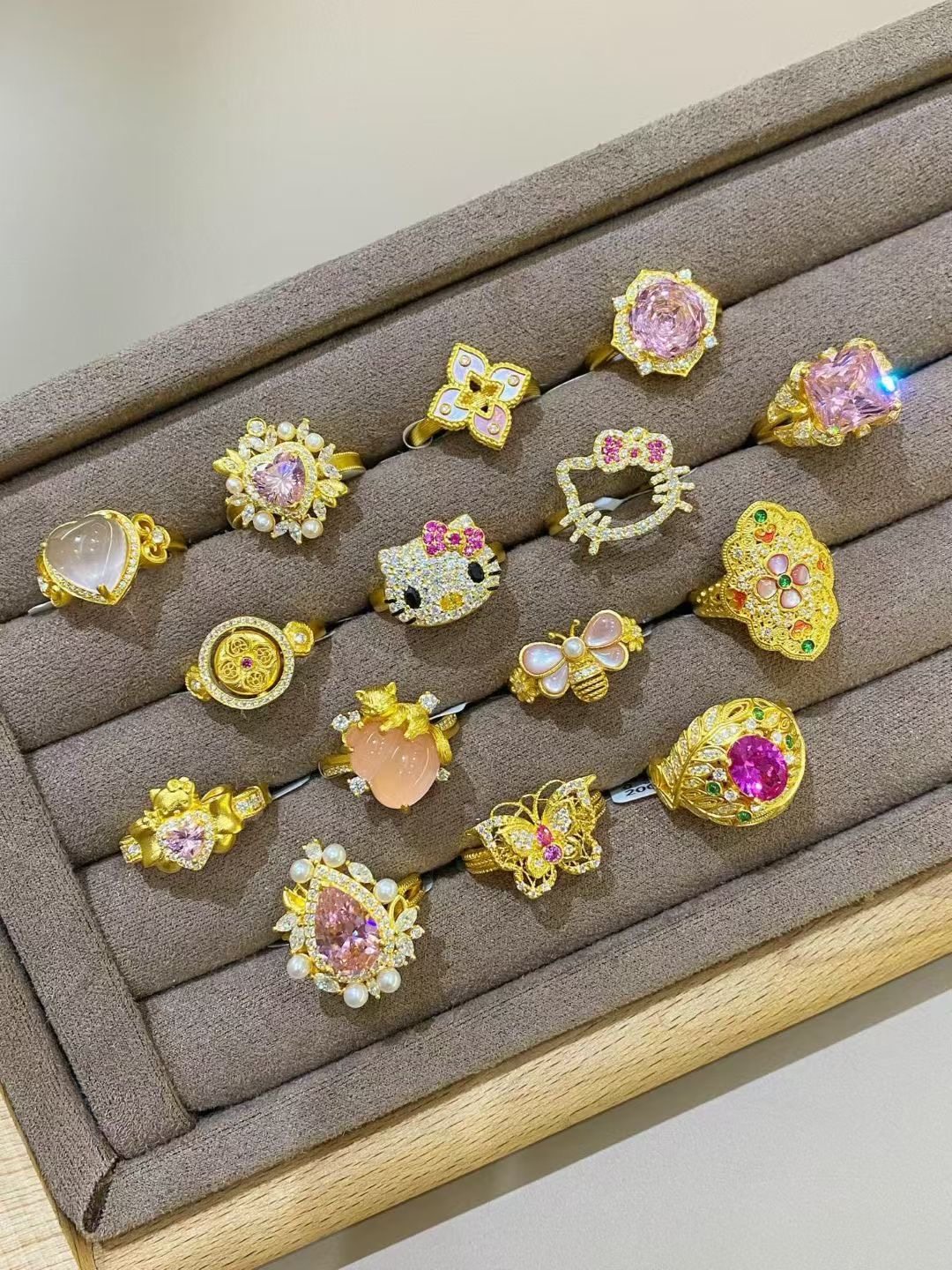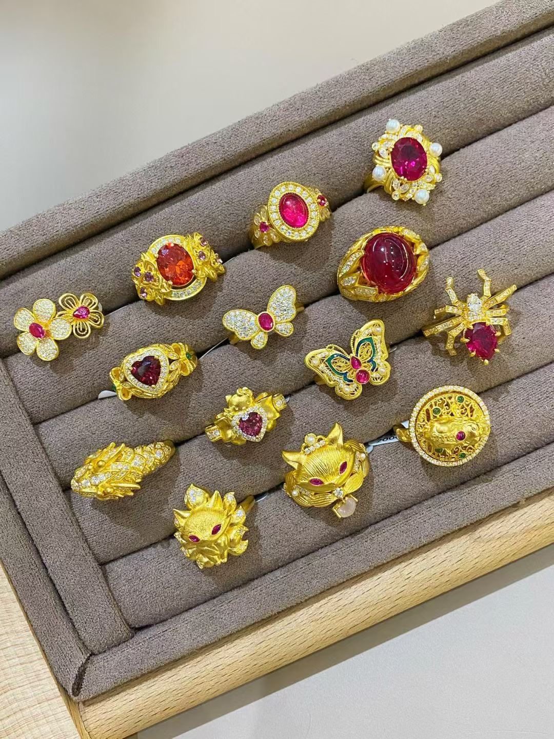 水贝黄金珐琅彩蝴蝶戒指足金拉丝活口蝴蝶黄金戒指镶嵌莫桑钻送礼