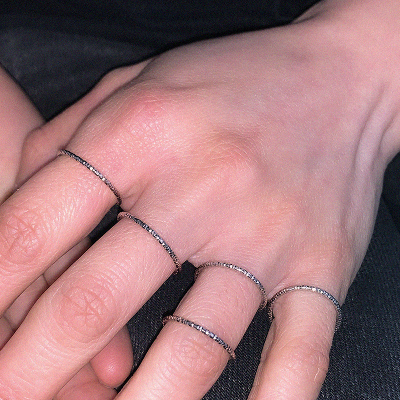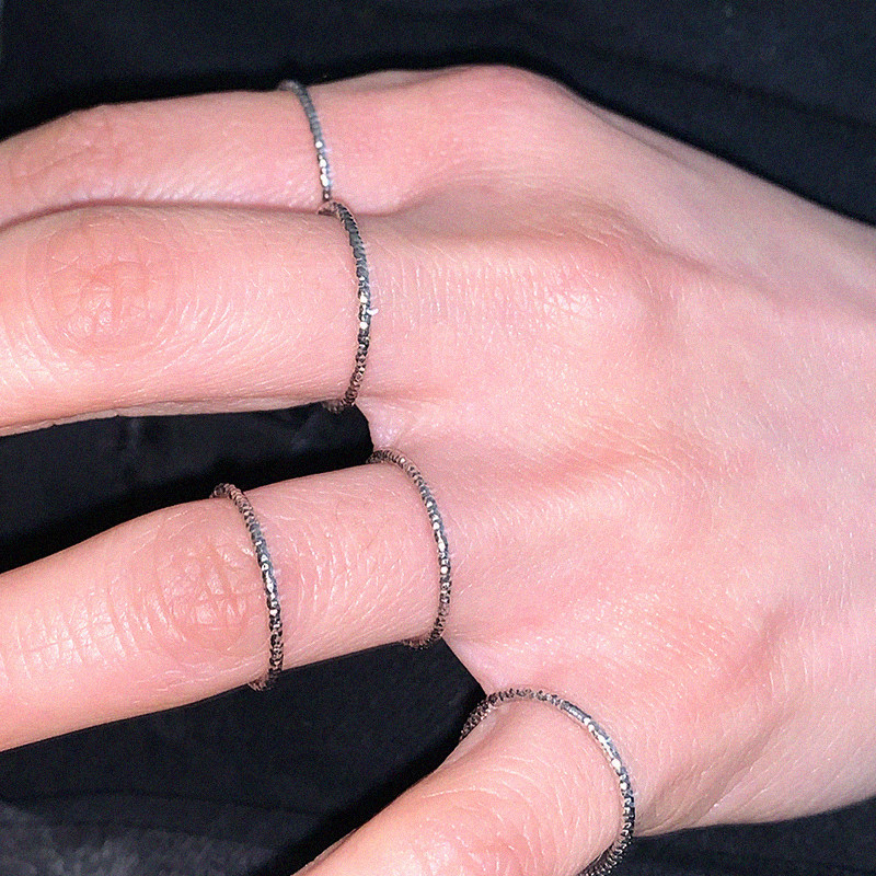 LLab 不变形不掉色s925极细精致细闪肌理感纯银素圈戒指叠戴