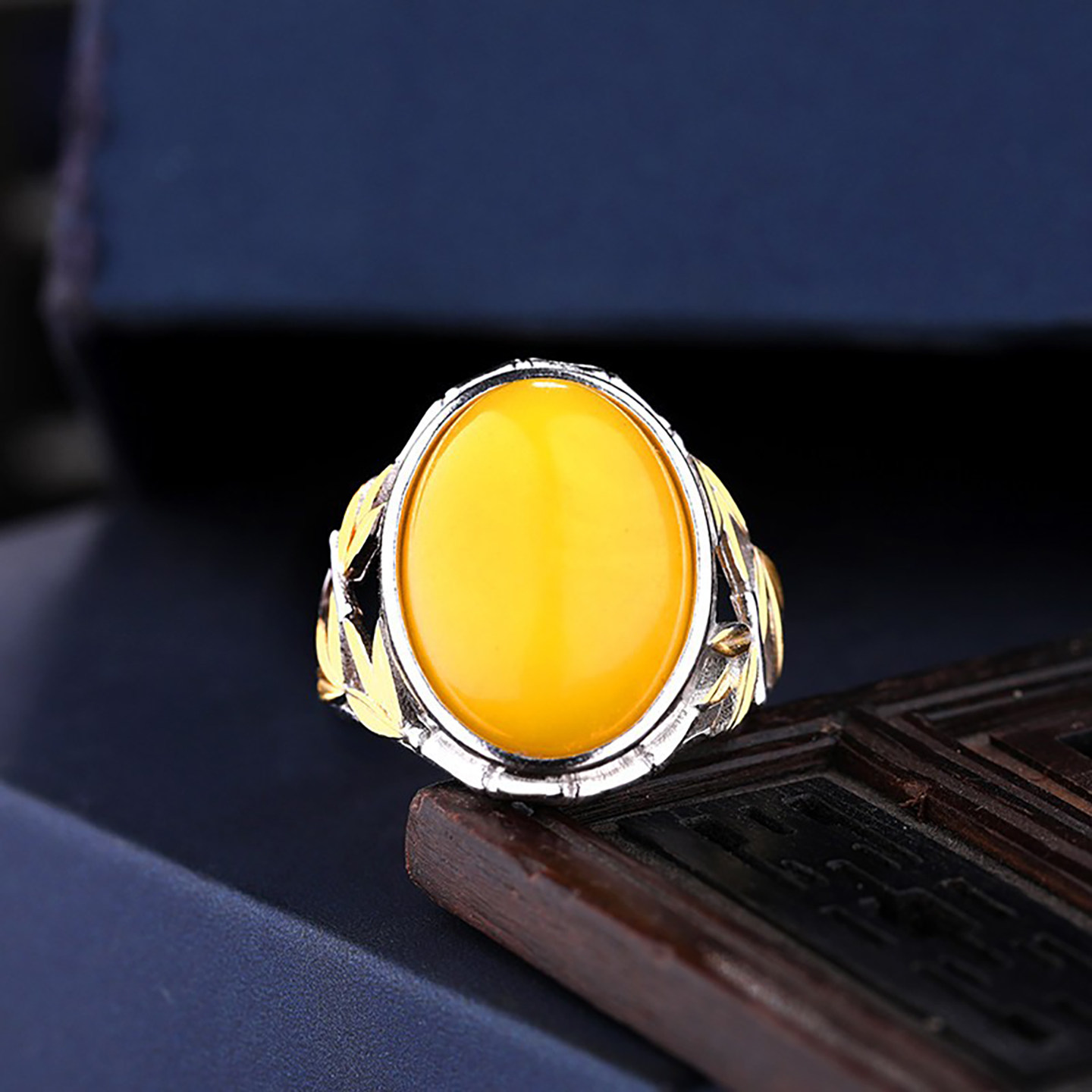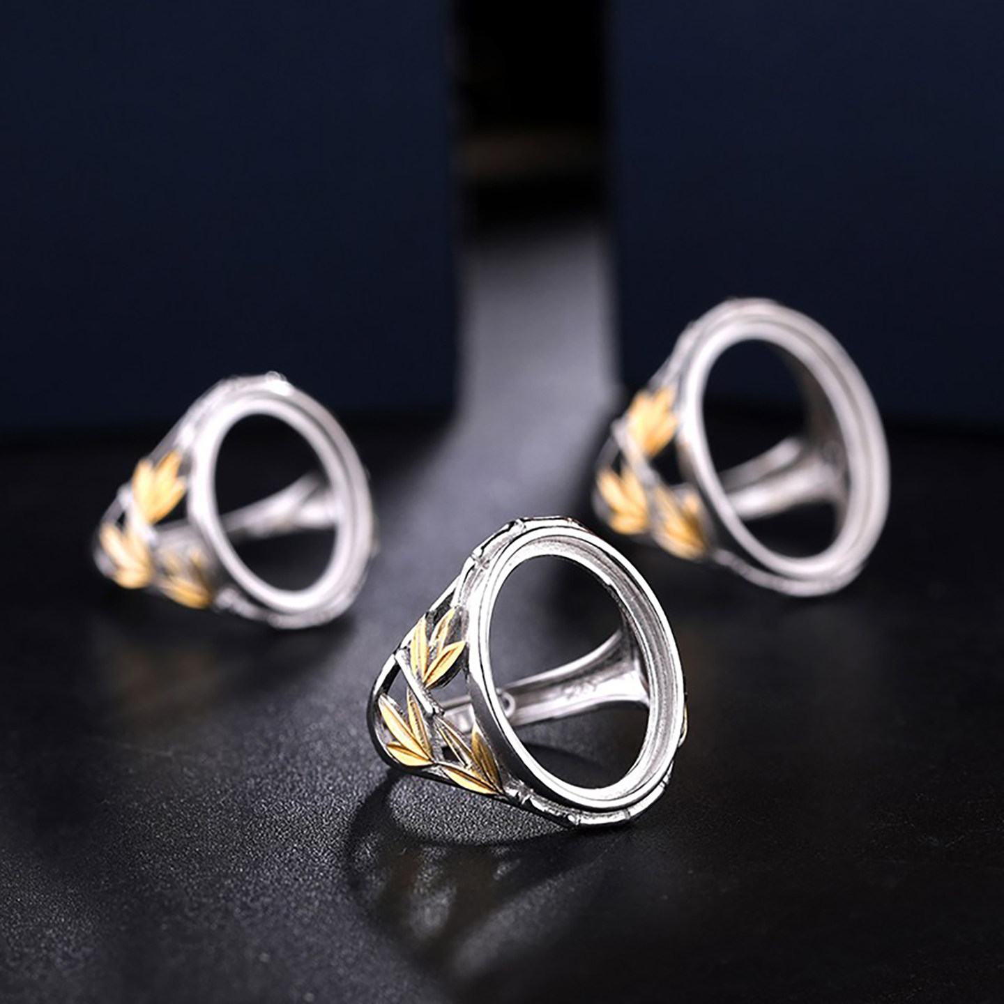 s925纯银戒指空托DIY镶嵌蜜蜡琥珀玉石戒面开口空托15*20 12*16