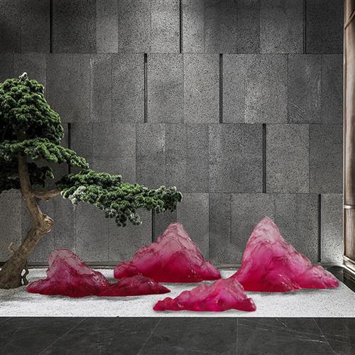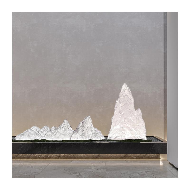 现代高档透明树脂绿色假山摆件工艺品软装饰酒店庭院客厅造景雕塑