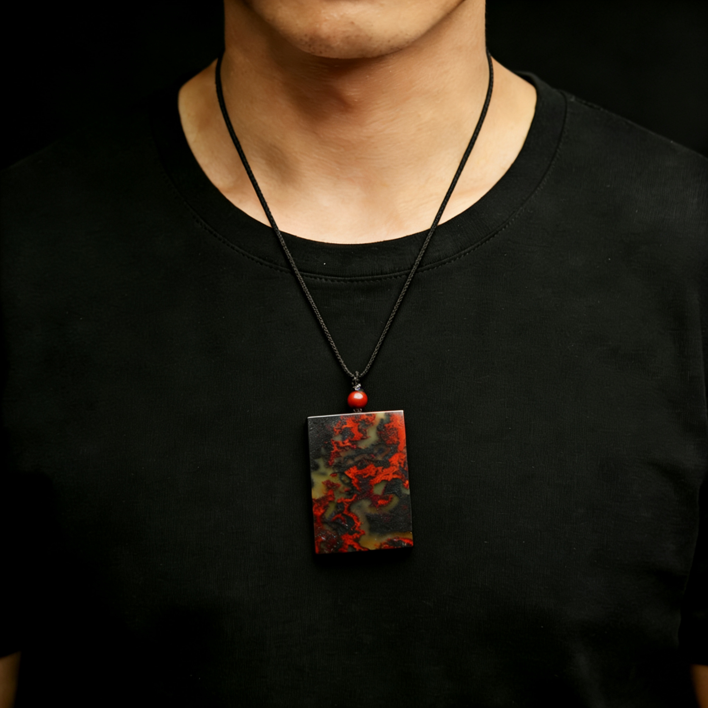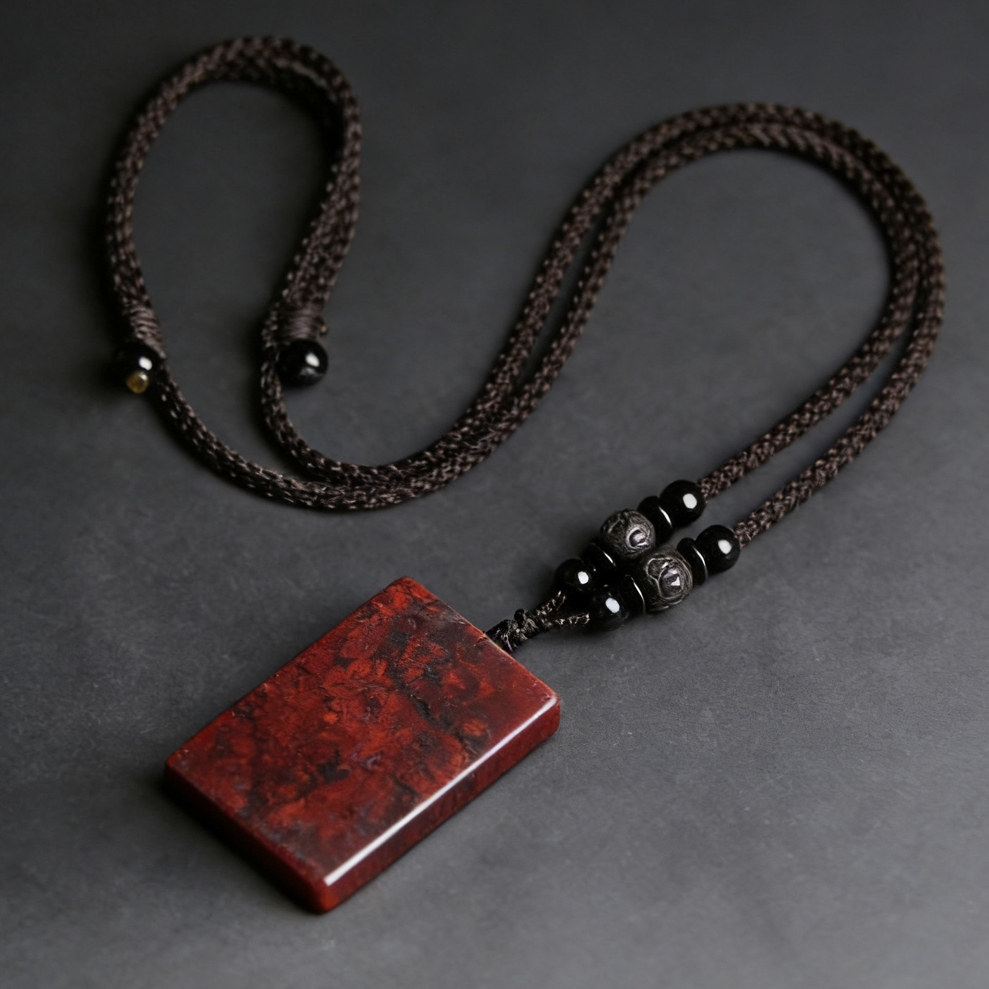 桂林鸡血玉平安牌吊坠天然正品玉石挂件方牌平安无事护身男女项链