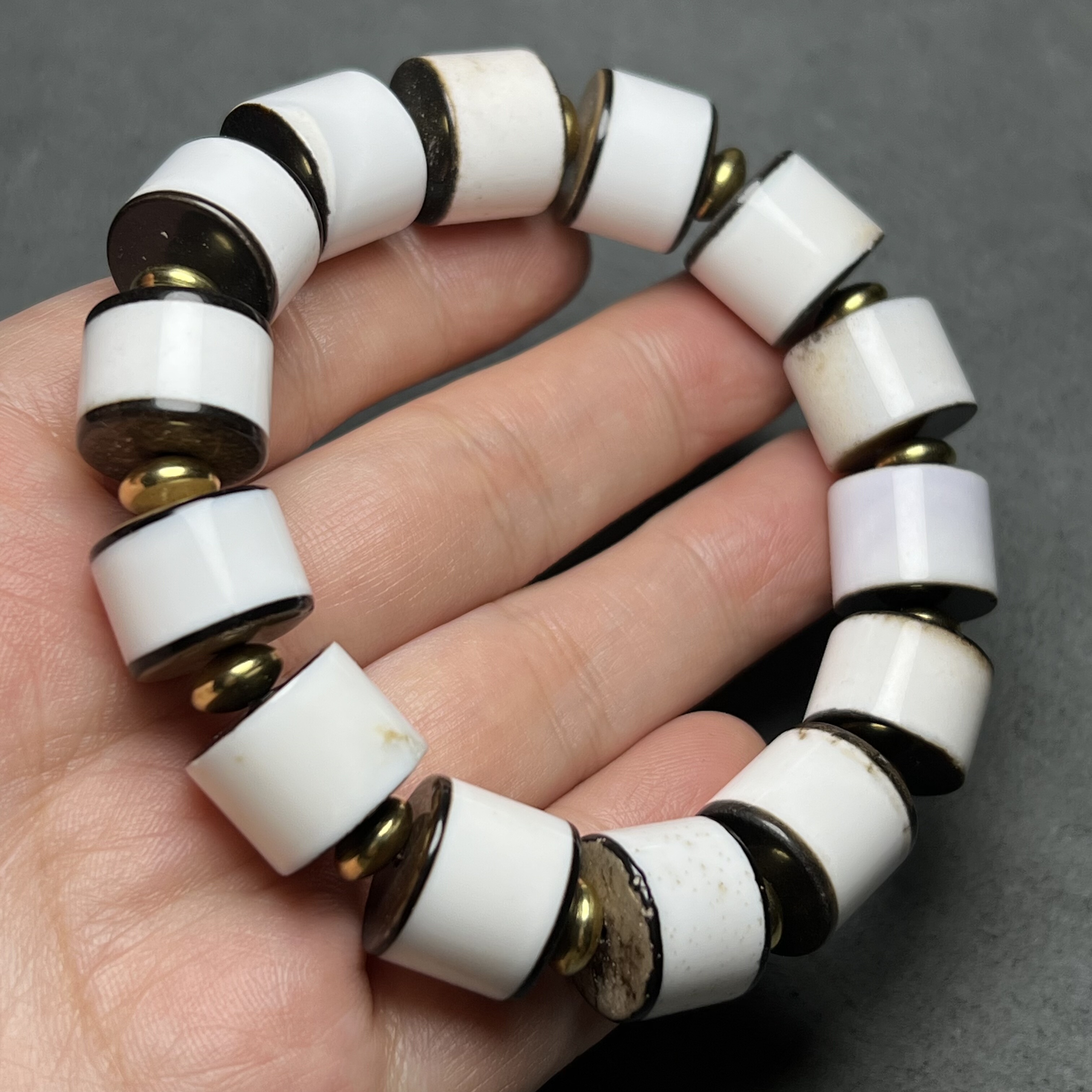 天然原矿西亚黑白剁珠 老古珠配饰手串项链老药师隔片珠diy配件