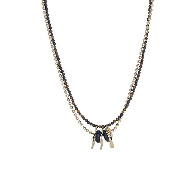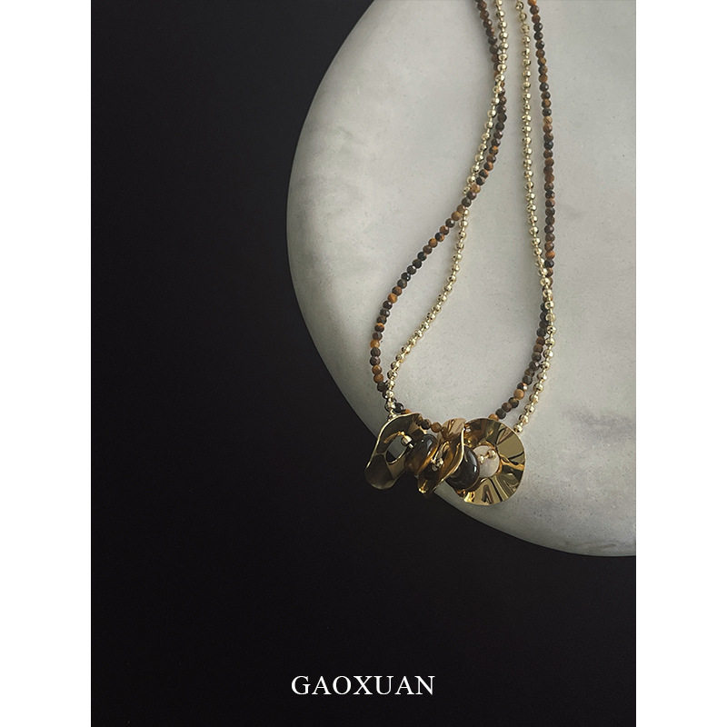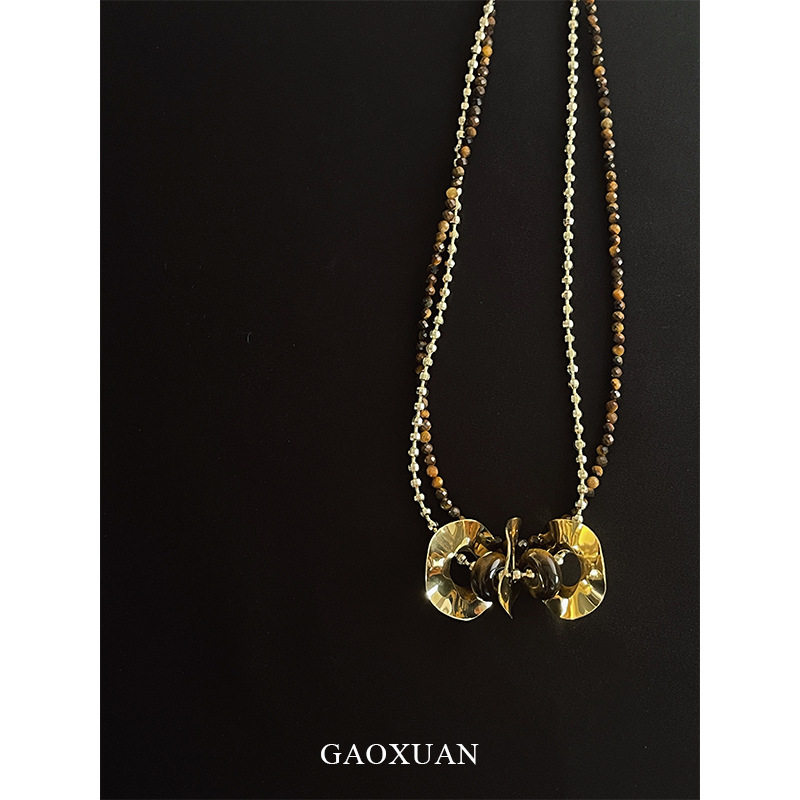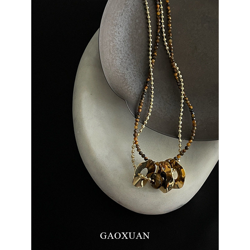 复古美拉德雅丹风虎眼石串珠项链度假民族风感秋冬时尚毛衣链