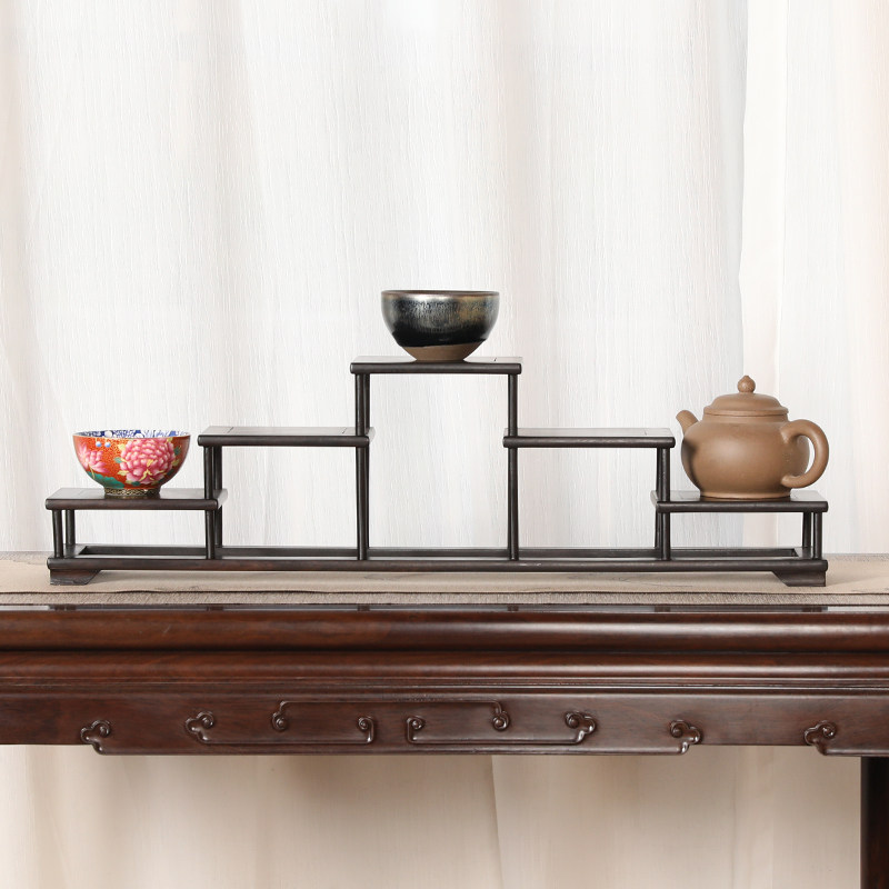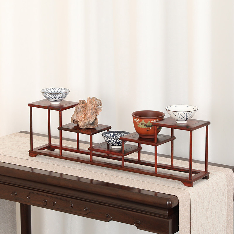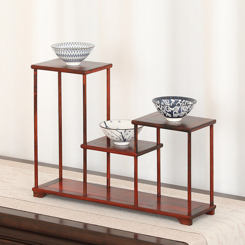 红酸枝明式盆景茶道零配摆件展示支架实木简约博古架婚宴冷菜托架