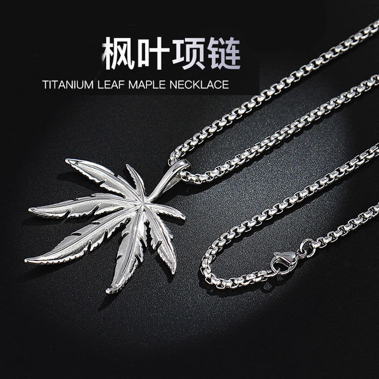钛钢枫叶男士项链 摇滚时尚铸造不锈钢叶子吊坠男士挂件配饰