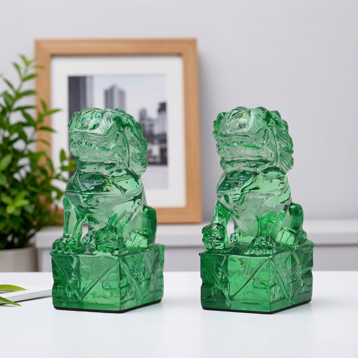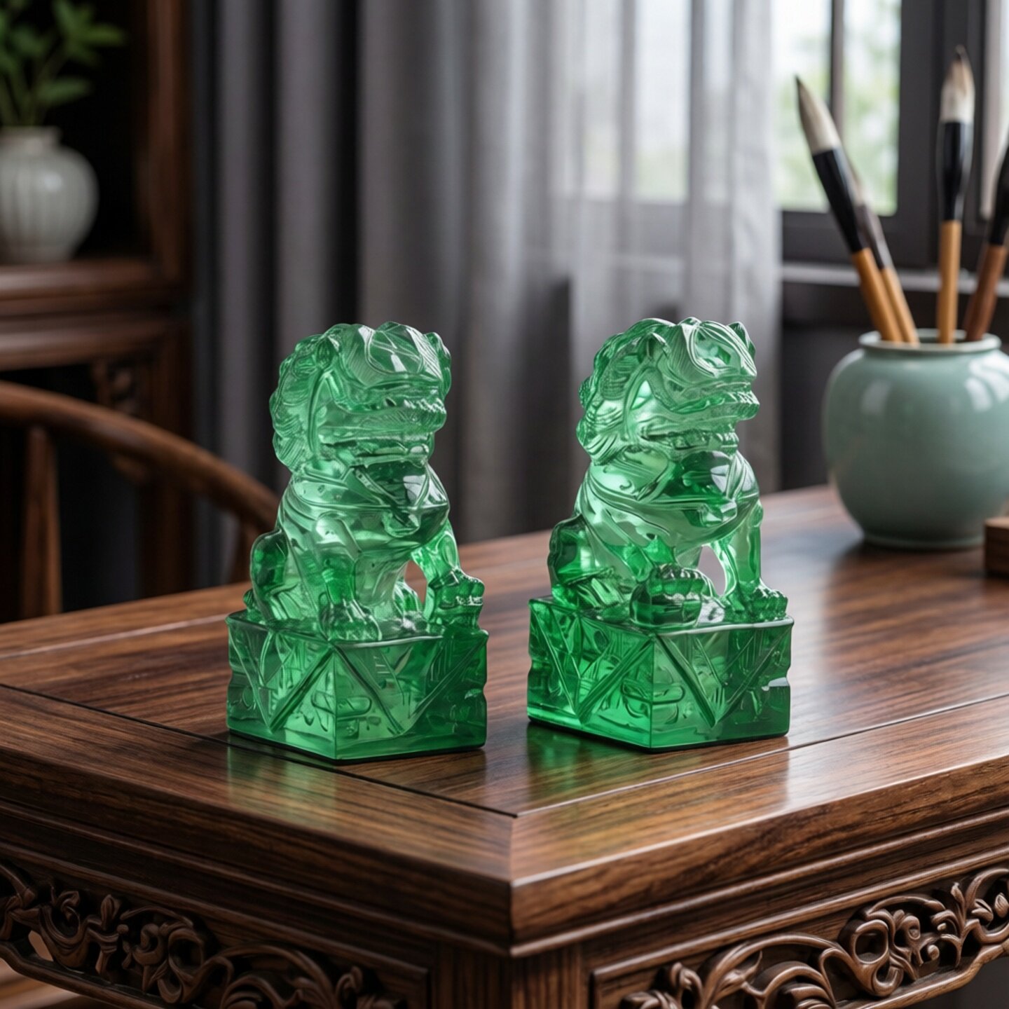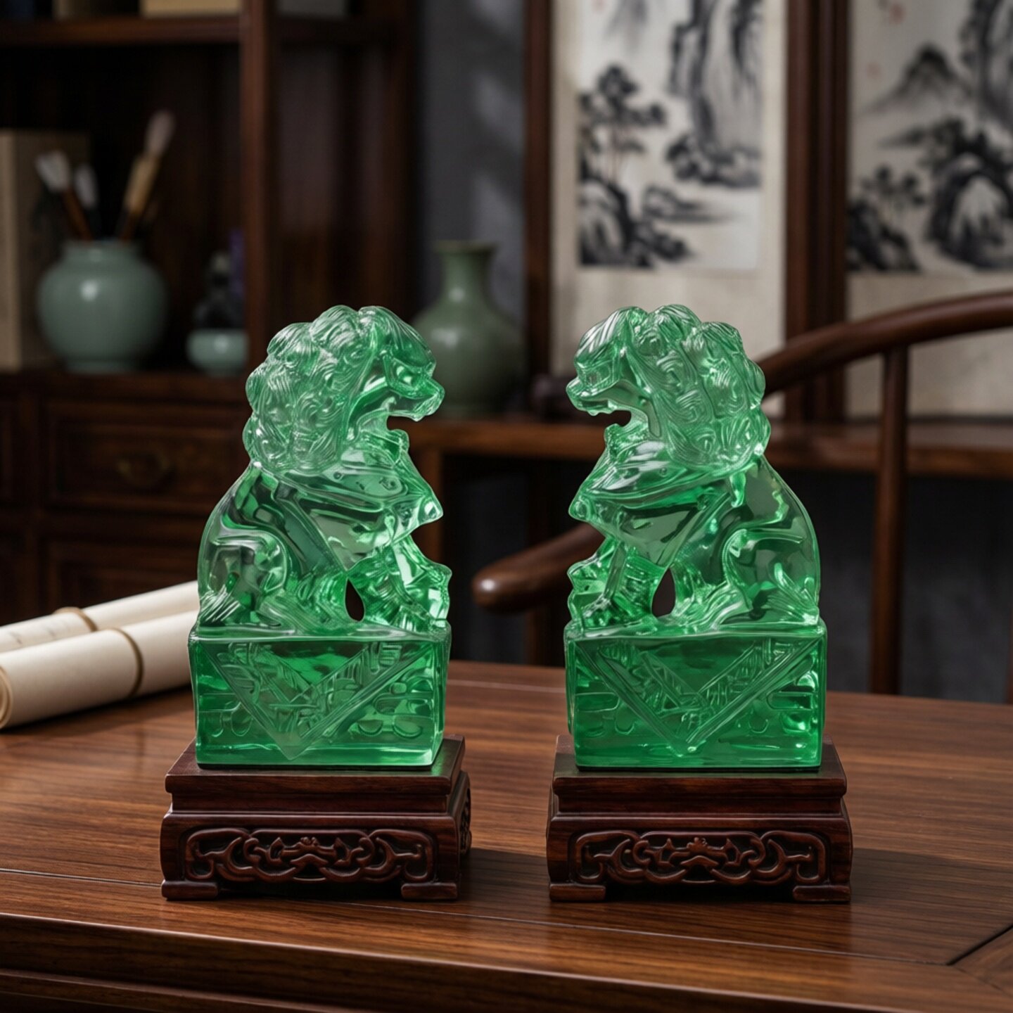 新中式绿色树脂狮子摆件一对装饰品客厅书房玄关招财镇宅高端摆设