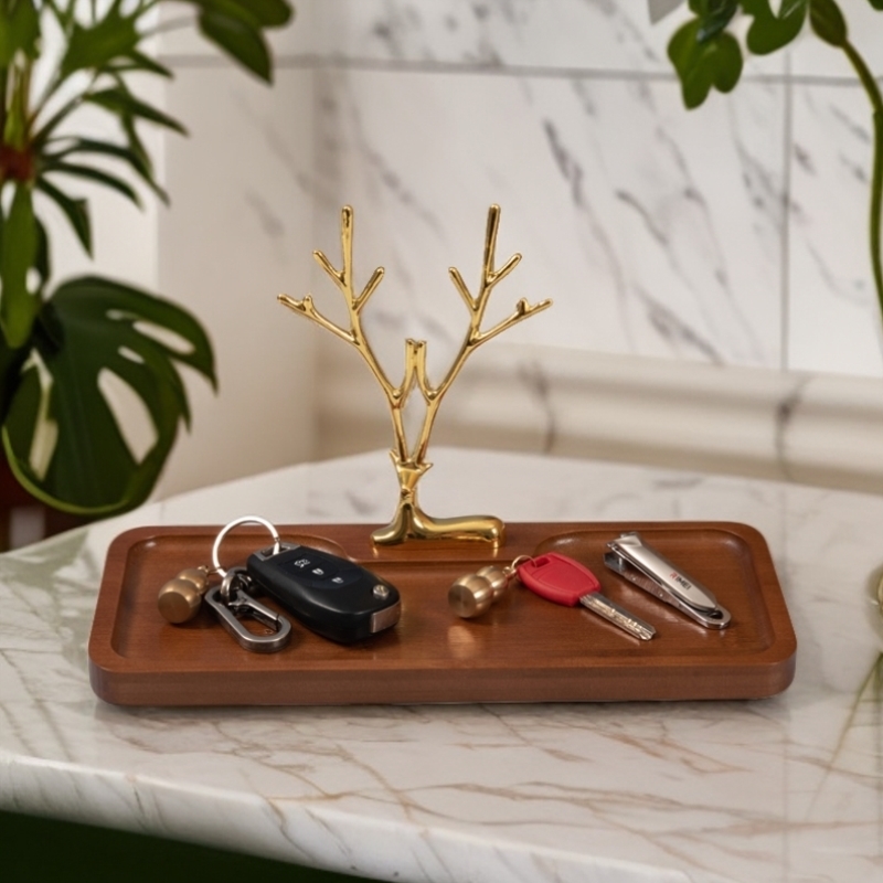 钥匙实木创意进门挂钩入户玄关摆件收纳盒收纳客厅桌面置物架门口