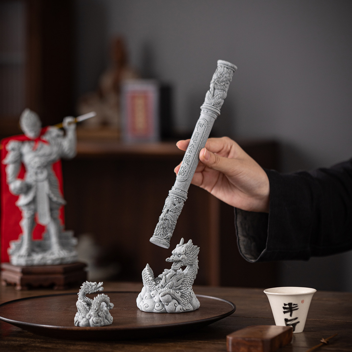 国潮如意金箍棒齐天大圣定海神针茶宠摆件创意盘龙柱鱼缸造景装饰