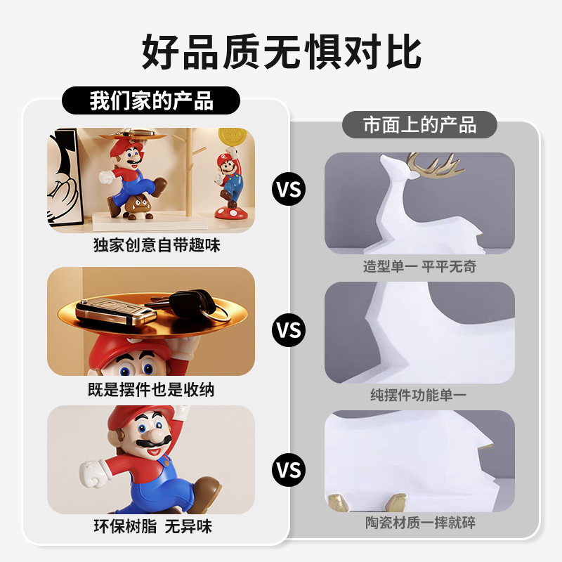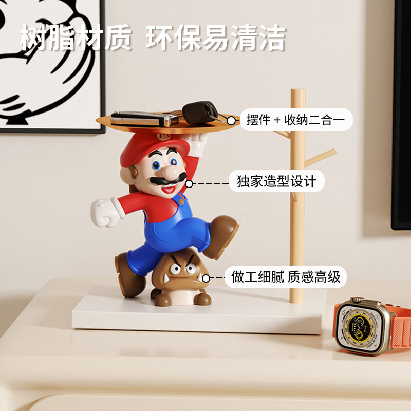 马里奥钥匙收纳玄关摆件高级感小众电视柜装饰品乔迁礼物周边手办