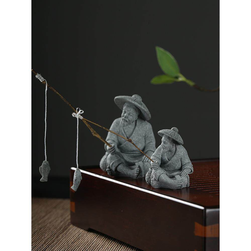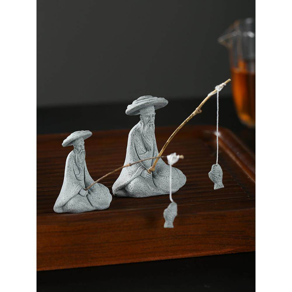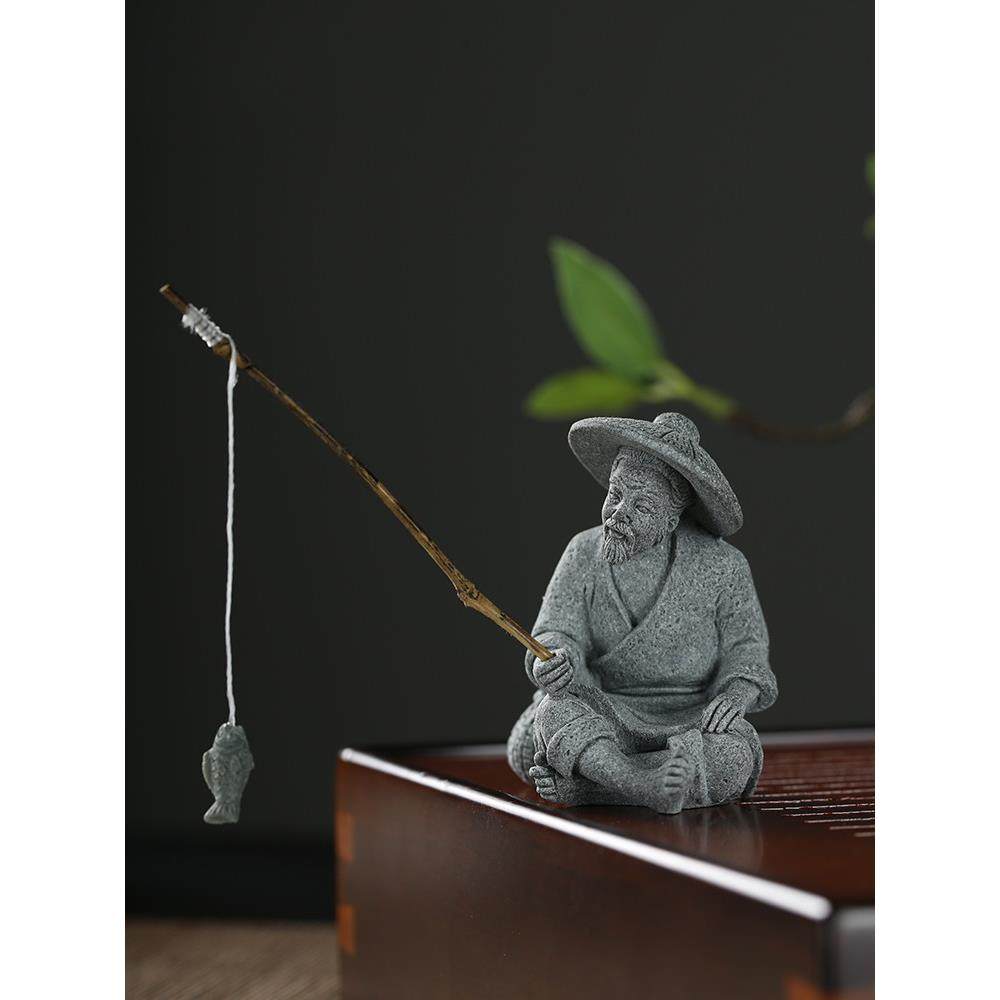 模拟姜太公钓鱼摆件流水鱼缸景观微景观生态鱼缸假山花卉装饰