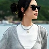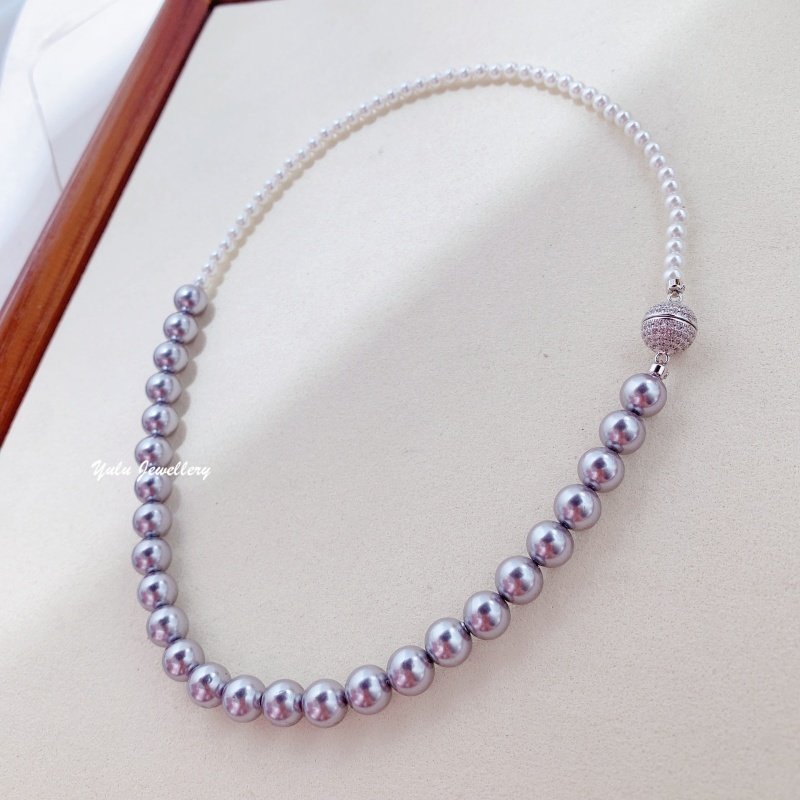 倪妮生日款项链母贝珍珠真多麻澳白色大小双拼 钻石球磁吸扣 颈链